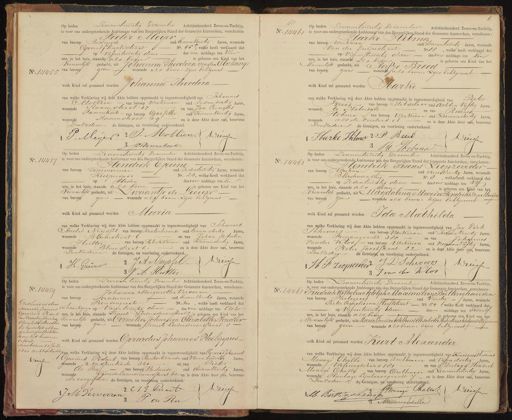 Mannelijk geslacht, uit Aatje Breed van beroep geen wonende als boven zijne Echtgenoot welk Kind zal genaamd worden Harke van welke Verklaring wij deze Akte hebben opgemaakt in tegenwoordigheid van Pieter Breed van beroep Metzelaar oud achten viftig Jaren, wonende te Sloterdijk en van Rimel Hitma- van beroep werkman oud zevenendertig Jaren, wonende als de Ouders 16 en is deze Akte door ons, benevens Denvadeien de Getuigen, na voorlezing onderteekend. Sbarke Hitma 2 P Brud Driessen 3 BE No. 14457 Op heden Zevenentwintig December Achttienhonderd Zeven-en-Tachtig is voor ons ondergeteekende Ambtenaar van den Burgerlijken Stand der Gemeente Amsterdam, verschenen: Hendrik Grune oud zesentwintig Jaren, wonende van beroep Timmerman No. 23, welke heeft verklaard dat Kuiperspad op Heden des voor middags ten Een ure, in het huis, staande als boven is geboren een Kind van het Vrouwelen geslacht, uit Zwaantje de Leeuw van beroep geen wonende als boven zijne Echtgenoot welk Kind zal genaamd worden Maria van welke Verklaring wij deze Akte hebben opgemaakt in tegenwoordigheid van Johannes André Neijssel van beroep Kantoorbediende oud Eenen dertig Jaren wonende Bloemstraat 6 en van Johan Anton Hutter van beroep Tabakskerer oud Tweeendertig Jaren wonende Blamstraat 6 en is deze Akte door ons, benevens Senvaderen de Getuigen, na voorlezing onderteekend. Dreessen 2 J. A. Neyssel. H. Grüm 37 Hutter No. 14463 Op heden Zevenentwintig December Achttienhonderd Zeven-en-Tachtig is voor ons ondergeteekende Ambtenaar van den Burgerlijken Stand der Gemeente Amsterdam, verschenen: Hendrik Frans Liepzeerder. van beroep Werkman oud vierenveertig Jaren, wonende Blindemansterg No. 8, welke heeft verklaard dat — op zesentwintig dezer des voormiddags ten vif „ ure, in het huis, staande als goven is geboren een Kind van het Vrouwelijk geslacht, uit Magdalena Maria Hendrika van Meiije van beroep geen wonende als boven zijne Echtgenoot welk Kind zal genaamd worden Ida Mathilda van welke Verklaring wij deze Akte hebben opgemaakt in tegenwoordigheid van Jan Dirk scheveers van beroep werkman oud zevenenveertig Jaren, wonende Prinsengracht 380 en van Johannes van der Klos van beroep werkman oud negenenvijftig Jaren, wonende Pieter Jacobstraat 22 en is deze Akte door ons, benevens Den Vaderen de Getuigen, na voorlezing onderteekend. H F Ziepieerder J: L Scheveers Driessen 3. J van der Klos No. 14459 Dit kind is door Koenraad Joannes Gerardus Fisart en Cornelia Johanne Elisabeth Staedler bij huwelijk alhier op heden voltrokken vooor het hunne erkend Amsterdam 12 Juli 1800 achtentachtig Driessen Op heden Zevenen twintig December Achttienhonderd Zeven-en-Tachtig is voor ons ondergeteekende Ambtenaar van den Burgerlijken Stand der Gemeente Amsterdam, verschenen: Johanna Margaretha Vervooren van beroep svroedvrouw oud Eenenveertig Jaren, wonende en Prinsingracht No. 300, welke heeft verklaard dat in haar bijrijn op Vierentwintig dezer des voor middags ten Acht t ure, in het huis, staande Tweeele Loodersdwarsstraat5 is geboren gen Kind van het Mannelijk geslacht, uit Cornelia Johanna Elisabeth Staedler r van beroep gen wonende Tweede Looiersdwarsstraat welk Kind zal genaamd worden Gerardus Johannes Philippus t van welke Verklaring wij deze Akte hebben opgemaakt in tegenwoordigheid van Coenaad Johannes Gerardus Pisart van beroep Kantoorbediende oud vierentwintig Jaren, wonende Nassaukade 340 en van Pieter de Ruf van beroep Bediende oud drieenveertig Jaren, Tweede Laurierdwarsstraat 62 en is deze Akte door ons, benevens wonende De aangiefsteun de Getuigen, na voorlezing onderteekend. Driessen 2 EJ G Kiset J M Vervoeren P de Ru No. 14465 Op heden Zenentwintig December Achttienhonderd Zeven-en-Tachtig, is, voor ons ondergeteekende Ambtenaar van den Burgerlijken Stand der Gemeente Amsterdam, verschenen: Friedrich Wilhelm Adolph Maximilian Buttinghausen van beroep Photograaf oud veertig Jaren, wonende Pieter Cornelis zoon Hooltstraat No. 54, welke heeft verklaard dat op Vijfentwintig dezer des middags ten Twaalf ure, in het huis, staande als boun is geboren een Kind van het Mannelijk geslacht, uit Maria Louise Adelheid Elisabeth Hubertina Adelgande Rissman van beroep geen wonende als boven: zijne Echtgenoot welk Kind zal genaamd worden Rurt Alexander van welke Verklaring wij deze Akte hebben opgemaakt in tegenwoordigheid van Franciscus Therdorees Menage Challa van beroep Ambtenaar oud vijfen dertig Jaren, wonendeWeteringschans 181 en van Nicolaas Hendrik Menagé Challe van beroep Ambtenaar oud zevenentwintig Jaren wonende Plantage Lijnbaansgracht 7 en is deze Akte door ons, benevens Den vaderen de Getuigen, na voorlezing onderteekend. Dreessen Amenage ChalenE M. Bustinshansee Mettenagschalla