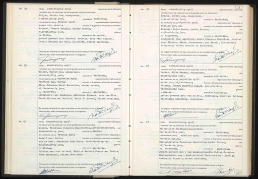 Waarvan akte, welke overeenkomstig de wet is voorgelezen. Inessect No. 59. Heden eenentwintig april negentienhonderd vijfenzestig, verscheen voor mij, ambtenaar van de burgerlijke stand van Amsterdam. Meijer, Gerrit Jan, aanspreker, VAAnSsOOS