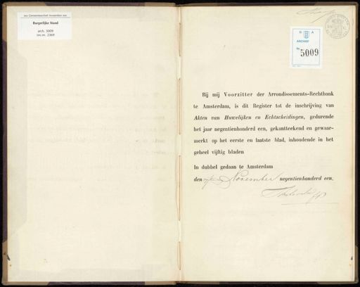 Stadsarchief Amsterdam, archieftoegang 5009, Archief van de Burgerlijke stand, inventarisnummer 2369, Huwelijken en echtscheidingen, Akten, Registers van huwelijksakten en echtscheidingsakten, 1901, deel 41