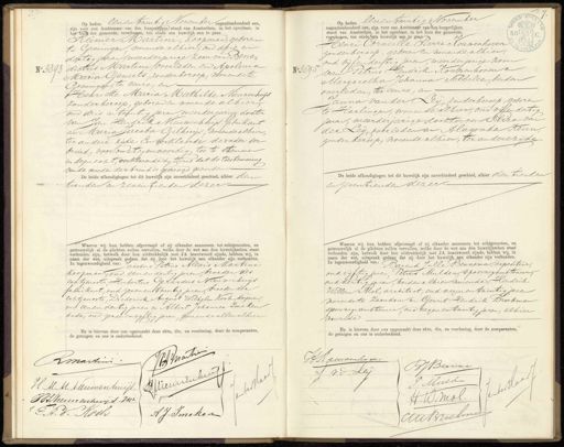 J No 3895 Op heden eenentwintig November negentienhonderd een, zijn voor ons Ambtenaar van den burgerlijken stand van Amsterdam, in het openbaar, in het huis der gemeente, verschenen, ten einde een huwelijk aan te gaan Benri Corneille Pierre Rouwerhoven zonder beroep; geboren en wonende alhier. oud vijfendertig jaren, meerderjarige zoon van Petrus Hendrik Kouwenhoven en Margaretha Johanna Sebbelee, beiden overleden, ter eenre, en Janna van der Leij, zonder beroep, geboren te Harlingen, wonende alhier, on vijfendertig jaren, meerderjarige dochter van Eliza van der Leij, overleden en Alagouda Keun, zonder beroep, wonende alhier, ter andere zijde De beide afkondigingen tot dit huwelijk zijn onverhinderd geschied, alhier den tienden en zeventienden dezer Waarna wij hun hebben afgevraagd of zij elkander aannemen tot echtgenooten, en getrouwelijk al de plichten zullen vervullen, welke door de wet aan den huwelijkschen staat verbonden zijn, hetwelk door hen uitdrukkelijk met JA beantwoord zijnde, hebben wij, i naam der wet, uitspraak gedaan dat zij door het huwelijk aan elkander zijn verbonden. In tegenwoordigheid van: Barend Julle Bennema, expediteur, oud vijftig jaren, Petruw Mulder, spoornegambtenaar, onddertig jaren, beiden alhier wonende, Hendrik Willem Mol, architect, oud negen entwintig jaren wonende te Zaandam en Gerrit Hendrik Broekman spooornegambtenaar, oud negenentwintig jaren, alhier wonende En is hiervan door ons opgemaakt deze akte, die, na voorlezing, door de comparanten, de getuigen en ons is onderteekend. Sooe