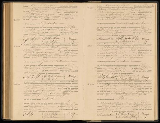 No 4736 Op heden Zevenentwintig April Achttienhonderd Een-en-Negentig, is voor ons ondergeteekende Ambtenaar van den Burgerlijken Stand der Gemeente Amsterdam, verschenen: Gerhardus Meijer. van beroep sschoenmaker oud drie en dertig Jaren, wonende Lapperstraat No. 15, welke heeft verklaard dat 2 op vijfentwintig deser des na middags ten vier ure, in het huis, staande Calsbonen is geboren een Kind van het mannelijk geslacht, uit Neeltje Boll van beroep geen wonende als boven zijne echtgenoote welk Kind zal genaand worden Gerhardus. van welke Verklaring wij deze Akte hebben opgemaakt in tegenwoordigheid van Johan Puulip Meijer van beroep agentvanpolitie oud zesendertig Jaren, wonende Wagenaadstraat 132 en van Jacob Meijer van beroep geen oud vijfenveertig Jaren, wonende Dapperstraat 1 en is deze Akte door ons, benevens den vader en de Getuigen, na voorlezing onderteekend. G Meijer 2 J. Ph. Meyjer Driessen 6 3 J. Meijen No 4742 Op heden Zevenentwintig April Achttienhonderd Een-en-Negentig is voor ons ondergeteekende Ambtenaar van den Burgerlijken Stand der Gemeente Amsterdam, verschenen: Antonius Hubertus van der Velde.- van beroep timmerman oud twee endertig Jaren, wonende rieine Kattenburgerstraat No. 12, welke heeft verklaard dat op vijfentwintig deser des na middags ten drie ure, in het huis, staande als boven is geboren een Kind van het vouwelyk geslacht, uit Everdina Margaretha Schut. van beroep winkelierste wonende als boven zijne echtgenoote welk Kind zal genaamd worden Everdina Geertruida Maria.- van welke Verklaring wij deze Akte hebben opgemaakt in tegenwoordigheid van Willem Hubertus van der Velde van beroep geen oud zeventig Jaren, wonende Anjelierstraat 97 en van Jacob Leendert Tinman van beroep kriier oud vierendertig Jaren, wonende als de ouders 189 en is deze Akte door ons, benevens den vader en de Getuigen, na voorlezing onderteekend. H H vandder Velde 2 W. H. Van der Velsta Driessen J. L. Timman. No. 4738 Op heden Zevenentwintig April Achttienhonderd Een-en-Negentig, is voor ons ondergeteekende Ambtenaar van den Burgerlijken Stand der Gemeente Amsterdam, verschenen: Hendrikus Voogt. dan beroep schipper oud vijfenveertig Jaren, wonende Eerste Klooster No. 7, welke heeft verklaard dat op vijfentwintig deser des na middags ten zes ure in het huis, staande als boven, is geboren een kind van het vrouwelik geslacht, uit Elizabeth Verboekend. van beroep geen wonende als boven zijne echtgenoote welk Kind zal genaamd worden Johanna Catharina.- van welke Verklaring wij deze akte hebben opgemaakt in tegenwoordigheid van Gerrit van Oostveen van beroep agentoanpolitie oud negenendertig Jaren, wonende Bilderdijkstraat 75 en van Rink van beroep zerkman oud achtenzestig Jaren, wonende Maagdelievenstraat 2 en is deze Akte door ons, benevens den vader en, de Getuigen, na voorlezing onderteekend. J2 G: V. Oostveen Driessen J H Voogt 3„ R as No 4744 Op heden Zevenentwintig April Achttienhonderd Een-en-Negentig is voor ons ondergeteekende Ambtenaar van den Burgerlijken Stand der Gemeente Amsterdam, verschenen: Obert Klarenbeek. van beroep kostbeambte oud evenentwintig Jaren, wonende Aes No. 73, welke heeft verklaard dat op vijfentwintig dejer des voor middags ten vier ure, in het huis, staande als boven is geboren een Kind van het vrouwelik geslacht, uit Johanna verdina Natte. van beroep geen wonende als boven zijne echtgenoote welk Kind zal genaamd worden Overdina. van welke Verklaring wij deze Akte hebben opgemaakt in tegenwoordigheid van Klaas Johannes Schuur van beroep portbeambte oud zesendertig Jaren, wonende Sint Nicolaasstraat 21 en van Jobonnes Petris van den Heyden van beroep als boven oud dertig Jaren, wonende Daniel Salpertstraat 111 en is deze Akte door ons, benevens den vader en de Getuigen na voorlezing onderteekend. Gl Blavenbeet KJ Schuur Driessen 3. J.P. v.d. Heijden No 4740 Op heden Zevenentwintig April Achttienhonderd Een en Negentig is voor ons ondergeteekende Ambtenaar van den Burgerlijken Stand der Gemeente Amsterdam, verschenen: Simon Malij. van beroep koopman oud vierendertig Jaren, wonende Utrechtschedaanstraat No 158, welke heeft verklaard dat -op zesentwintig deser des middags ten traalf ure, in het huis, staande als boven is geboren een Kind van het mannelijk geslacht, uit Johanna Christina Possin. van beroep geen wonende als boven zijne echtgenoote welk Kind zal genaamd worden Christiaan. van welke Verklaring wij deze Akte hebben opgemaakt in tegenwoordigheid van Johannes Maly van beroep verkman oud zesentwintig Jaren, wonende als de ouders 117 en van Jacob Daniel Betmer van beroep verkman oud zevenentwintig Jaren, wonende als boven /51 en is deze Akte door ons, benevens den vader en de Getuigen, na voorlezing onderteekend. Dreessen. 2 J Malije I M: dij 0 3 J.D. Belmer No. 4746 Op heden Zevenentwintig April Achttienhonderd EentenNegentig is voor ons ondergeteekende Ambtenaar van den Burgerlijken Stand der Gemeente Amsterdam, verschenen. Peter van Merkestem. van beroep bouknerker oud evenendertig Jaren, wonende inden straatNo. 36, welke heeft verklaard dat op vier en twintig lejer desna middags ten zeven ure, in het huis, staande als boven is geboren een Kind van het mannelijk geslacht, uit Maria Elisabeth van der Heijde van beroep geen wonende als boven zijne echtgenoote welk Kind zal genaamd worden Piter van welke Verklaring wij deze Akte hebben opgemaakt in tegenwoordigheid van Jacobus Grossouw van beroep schoenmaker oud vijfenvijftig Jaren wonende Pieter Jacobstraat 19 en van Lidoviche Jacobus de Vogel van beroep zikman oud eenenzestig Jaren, wonende Lijnbaangracht 185 en is deze Akte door ons, benevens den vakeren de Getuigen, na voorlezing onderteekend. Ge Meskestein d Grosseun Driessen 3 L: J: De. Vogel