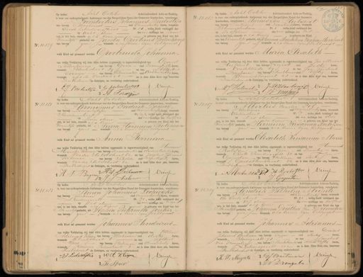No. 11.179 Op heden Acht October Achttienhonderd Acht-en-Tachtig, is voor ons ondergeteekende Ambtenaar van den Burgerlijken Stand der Gemeente Amsterdam, verschenen. Lambertus Johannes Bredestijn van beroep Machinist oud vierendertig Jaren, wonende Eerste Leliedwarsstraat No. 18, welke heeft verklaard dat op acht dezer des voormiddags ten Zeven ure, in het huis, staande als boven, is geboren een Kind van het Vrouwlik geslacht, uit Jacoba Geertruid Sodenkamp van beroep geen wonende alsboven, zijne Echtgenoot, welk Kind zal genaamd worden Geertruida Johanna- van welke Verklaring wij deze Akte hebben opgemaakt in tegenwoordigheid van Gerrit Iodenkamp, van beroep Geen oud zevenenzestig Jaren, wonende Bloemstraat 29 en van Albertus Terwijn van beroep schoenmaker oud achtenveertig Jaren, wonende als de Ouders i8 en is deze Akte door ong benevens Den Vaderen de Getuigen, na voorlezing onderteekend Driessen LJ. Bredestyn 2 G Lodenkuks 3 A SG No. 11.185 Tid 5 N Op heden Acht October Achttienhonderd Acht-en-Tachtig C N is voor ons ondergeteekende Ambtenaar van den Burgerlijken Stand der Gemeente Amsterdam, verschenen Marius Jan Hulswit end van beroep Teekenaar oud zesentwintig Jaren, wonende Wetering plantsoen No. 1 welke Meelt verklaard dat E — op zes dezer des voor middags ten zes Curte ure, in het huis, staande als boven, is geboren een King van het mumlijk geslacht, uit Johanna Magdalena Sophiaelerghart van beroep geen wonende als booen zijne Echtgenoot welk Kind zal genaamd worden Maria Elisabeth van welke Verklaring wij deze Akte hebben opgemaakt in tegenwoordigheid van Jan Marius Hulsmt van beroep drogist oud zestig Jaren wonendevondelkade 89 en van Jan Frederik Drughorn van beroep Ambtenaarud vijftig Jaren, wonende Hlooiniersburgwal 48 en is deze ikte door ons, benovens Den Vaderen de Getuigen, na voorlezing onderteekend MJ. Hulswit J AHulsmi Driessen 3 J.P Duchomp 8 No. 11.180 Op heden Acht October Achttienhonderd Acht-en-Tachtig is voor ons ondergeteekende Ambtenaar van den Burgerlijken Stand der Gemeente Amsterdam, verschenen: Cironymus Frederik Bagnaij van beroep Diamantsflijper oud negenentwintig Jaren, wonende Sacnredamstraat No 596, welke heeft verklaard dat op zeven dezer des voormiddags ten halfdrie ure, in het huis, staande als boven is geboren een Kind van het huwelijk geslacht, uit Anna Hermina Tieleman van beroep geen wonende als boven zijne Echtgenoot welk Kind zal genaamd worden Anna Hermina van welke Verklaring wij deze Akte hebben opgemaakt in tegenwoordigheid van Herman tlexander Tieleman van beroep Diamantmaker oud drieentwintig Jaren, wonende van der Helststraat 62 en van Jacobus Johannes Tieleman van beroep schilder oud vijfentwintig Jaren wonende Van der Elelststraat 62 en is deze Akte door ons, benevens Den Vaderen de Getuigen, na voorlezing onderteekend. H:A: Tilleman Driessen H F: Bagnaij 13 J.J. Tieleman No. 11.187 Op heden Acht October Achttienhonderd Acht-en-Tachtig is, voor ons ondergeteekende Ambtenaar van den Burgerlijken Stand der Gemeente Amsterdam, verschenen: Albertus van der Pol van beroep Werkman oud negenenveertig Jaren, wonende Vinkenstraat No. 7, welke heeft verklaard da op zes dezer des na middags ten drie ure, in het huis, staande Paldboven is geboren een Kind van het Vrouwelijk geslacht, uit Hermina Susanna Roelotsen van beroep geen wonende als boven: zijne Echtgenoott welk Kind zal genaamd worden Elisabeth Pisanna Maria van welke Verklaring wij deze Akte hebben opgemaakt in tegenwoordigheid van Hermanus Rielofsen van beroep geen oud zeventig Jaren, wonende Korte Prinsengracht 35 en van Jan Gagentan van beroep werkman oud dertig Jaren, wonende Goudsbliemstraat 84 en is deze Akte door ons, benevens, Lenacteren de Getuigen, na voorlezing onderteekend. AAlbertus va Pol H Roelefsen Driessen J. Gusentan No 11.183 Op heden Acht October Achttienhonderd Acht-en-Tachtig , is voor ons ondergeteekende Ambtenaar van den Burgerlijken Stand der Gemeente Amsterdam, verschenen: Simon Johannes Lodewijks van beroep werkman oud negenentwintig Jaren, wonende Lindengracht No. 171, welke heeft verklaard dat op zes dezer des voormiddags ten Negen ure, in het huis, staande ald boven is geboren een Kind van het Mannelijk geslacht, uit Sophia Pieternella Jonker van beroep geen wonende als boven zijne Aechtgenoot welk Kind zal genaamd worden Johannes Hendricus van welke Verklaring wij deze Akte hebben opgemaakt in tegenwoordigheid van Willem Adrianus Kleijne van beroep Werkman oud dertig Jaren, wonende Elandstraat 8 en van Tolkert Spoor van beroep werkman oud vierendertig Jaren, wonende Ktromme Salmstraat 3 en is deze Akte door ons, benevens Den Vaderen de Getuigen, na voorlezing onderteekend JJ Lodewijks & Wdt Kleijne Driessen 3 A Spoor No. 11.189 Op heden Acht October Achttienhonderd Acht-en-Tachtig is voor ons ondergeteekende Ambtenaar van den Burgerlijken Stand der Gemeente Amsterdam, verschenen: Hendrik Wilhelm Meynte van beroep Schoenmaker oud Eenentwintig Jaren, wonende da Oostastraat No. 91, welke heeft verklaard dat op Vijf dezer des voormiddags ten half zes ure, in het huis, staande als boven is geboren een Kind van het annelijk geslacht, uit Johanna Dorothea Van Drongelen van beroep geen wonende als boven, zijne Echtgenoot welk kind zal genaamd worden Johannes Idrianus van welke Verklaring wij deze Akte hebben opgemaakt in tegenwoordigheid van Gerardus Johannes Bartman van beroep Tapper oud dertig Jaren, wonende Bloemgracht 78 en van Jacobus van Drongelen van beroep Mlleubelmaker oud Tweeen vijftig Jaren, wonende Lijnbaarsgracht 102 en is deze Akte doorons, benevens Denvaderen de Getuigen, na voorlezing onderteekend. 1H„ W, Meynte 2 G. Bartman Driessen 3 J.V Drongeelie