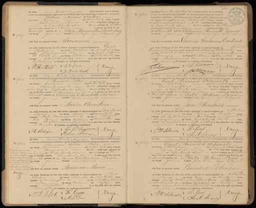 welk Kind zal genaamd worden Omma Susanne Gertrude aan welke Verklaring wij deze Akte hebben opgemaakt in tegenwoordigheid van Fredert Coenraad Neumann van beroep Kantoortediende oud achtenzestig Jaren, wonende als de Oudersj. 15 en van Julius Hermann Meumann van beroep Ambtenaar oud vierendertig Jaren, wonende Bickersgracht 30 en is deze Akte door ons, benevens Den Vaderen de Getuigen, na voorlezing onderteekend. 2 F:C Naemam S Jh. Tevemmann Driesse 1 JHNeumann No. 1621 Op heden Zevenen twintig Cegustus Achttienhonderd Acht-en-Tachtig, is voor ons ondergeteekende Ambtenaar van den Burgerlijken Stand der Gemeente Amsterdam, verschenen: Hendrika Kleijer van beroep vroedvrouw oud achten vijftig Jaren, wonende Egelantiersgracht No. 34, welke heeft verklaard da in haar bijren op vijffentwintig dezer des voormiddags ten Elf ure, in het huis, staande 1 Haarlemerwg 81, is geboren een Kind van het Vrumlijk geslacht, uit Cornelia Elisabeth Teijsen wonende Haarlemmerweg 81 van beroep geen welk Kind zal genaamd worden Maria Christina van welke Verklaring wij deze Akte hebben opgemaakt in tegenwoordigheid van Lirk Jaulus Seysen. van beroep Kuiper oud negenenveertig Jaren, wonendeKute Brouwersgracht 4 en van Hendrik van Pareen van beroep werkman oud vierenzestig Jaren, wonende Eeerse Lindendwarsstraat 2 en is deze Akte door ons, benevens De Vangegsteen de Getuigen, na voorlezing onderteekend. in Driessen 2 D. T. Teijse.I H Kleyer H van Sas een . . . . . . No. 9627 Op heden Zevenentwintig Cgustus Achttienhonderd Achten-Tachtig, is voor ons ondergeteekende Ambtenaar van den Burgerlijken Stand der Gemeente Amsterdam, verschenen: Carl Heinrich Schwartz oud zevenendertig Jaren, wonende van beroep Blikslager Gerard Doutstraat No. 144, welke heeft verklaard dat op Vijfentwintig dezer des voor middags ten negen ure, in het huis, staande als boven is geboren een Kind van het Mannelijk geslacht, uit Antje Helena Lens van beroep geen wonende als boven zijne Echtgenoot - welk Kind zal genaamd worden Jan Hendrik 6 van welke Verklaring wij deze Akte hebben opgemaakt in tegenwoordigheid van Abrakam ens van beroep Geen oud zeventig Jaren, wonende Eerste Weteringdwarsstraat 69 en van Leendert Abraham Lens van beroep Bierbottelaar oud veertig Jaren, wonende Langeleidschedwarsstraat, 88 en is deze Akte door ons, benevens Den Vaderen de Getuigen, na voorleiing onderteekend. 2 A: Lens Driessen W Sehmart 3 Le A Lecus No 9623 Dit kind is door Frans Holman; en Anna Catharina Deteker bij huwelijk alhier opheden vol- trokken voor het hun„ erkend. Amsterdam 2 8 Nover 1800 Acht en tachtig Driessn Op heden Zevenen twintig Augustus Achttienhonderd Acht-en-Tachtig is voor ons ondergeteekende Ambtenaar van den Burgerlijken Stand der Gemeente Amsterdam, verschenen: Francisca Sophia Blok. van beroep broedvrouw oud achtenvijftig Jaren, wonende toorBrouwersgracht No. 143, welke heert verklaard dat an in haar bijzijn op Vieren twintig dezer des voormiddags ten Vier nre, in het huis, staande Lienstraat 51 is geboren een Kind van het lijk vrouwelijk geslacht, uit Anna Catharina Dekker van beroep geen wonende Tuinstraat 50 enne Vooensber Vtig welk Kind zal genaamd worden Romana Maria van welke Verklaring wij deze Akte hebben opgemaakt in tegenwoordigheid van Klaas Gootjes van beroep schoenmaker oud zesentwintig Jaren, wonende Mariniersplein 10. en van Matthijs Johannes Som van beroep werkman oud vijftig Jaren, wonende Tuinstraat 151 en is deze Akte door ons, benevens Te aangeybterende Getuigen, na voorlezing onderteekend. 2 K Gootjr Driessen 1 O. D Bik 3. M S. Dom No. 9629 Op heden Zeven en twintig Aregustus Achttienhonderd Acht-en-Tachtig is voor ons ondergeteekende Ambtenaar van den Burgerlijken Stand der Gemeente Amsterdam, verschenen: Carl Heinrich Schwartz van beroep Blikslaae, oud zevenen dertig Jaren, wonende Gerard Dokestraat No. 144, welke heeft verklaard dat op vijfen twintig dezer des voormiddags ten half tien ure, in het huis, staande als oogin- is geboren een Kind van het Mannelijk geslacht, uit Antje Helena Lens van beroep geen wonende als boven zijne Echtgenoot