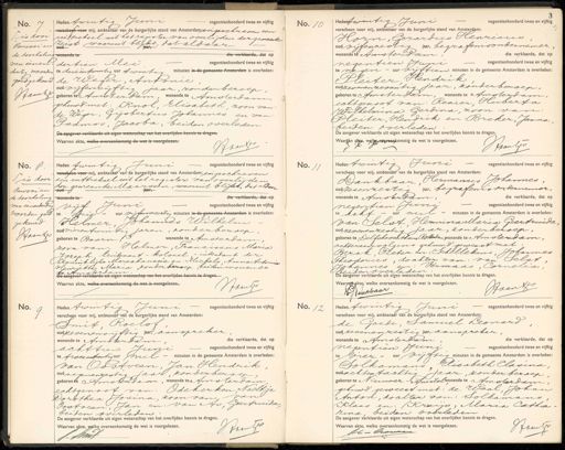 No. 7. is door Renvooi en de doorbaling van eenen dertig woorden goedgekeurd Haart Heden twintig Juni negentienhonderd twee en vijftig verscheen voor mij, ambtenaar van de burgerlijke stand van Amsterdam ingeschreven een uittreksel uit het register van overlijden der geweente zerst waaruit blijkt, dat aldaar /ovd 1jaar. de verkaarde dat op wonendo to dertien Mei negentienhonderd twee en vijftig „te drie entwintig uur twintig minuten in de gemeente Amsterdam is overleden: de Weger, Antonie oud vijfenvijftig jaar, zonder beroep geboren te Amsterdam, wonende te Amsterdam, gehuwd met: Knol Elisabeth, zoon van de Weger, Gijsbertus Johannes en van Iadmos, Jacoba, beiden overleden De aangever verklaarde wit eigen wetenschap van het overlijden kennis te dragen. Waarvan akte, welke overeenkomstig de wet is voorgelezen. Hamteo No. 10 Hedenwintig Juni negentienhonderd twee en vijftig verscheen voor mij, ambtenaar van de burgerlijke stand van Amsterdam: Horn, Gerardus Kenricus oud vijfenzestig jaar, begrafensondernemer wonende te Amsterdam, die verklaarde, dat op negentien Juni negentienhonderd twee en vijftig te negen uur vijftien minuten in de gemeente Amsterdam is overleden Pleiter Hendrik oud zevenenzeventig jaar, zonder beroep, geboren te Amsterdam, wonende te Amsterdam, echtgenoot van: Renier, Huberta Wilhelmina Gerdina, zoon van Pleiter, Hendrik en Breker, Janna beiden overleden De aangever verklaarde uit eigen wetenschap van het overlijden kennis te dragen. Waarvan afte, walke orevoenkomstig de wet is voorgelezen. Haarles No. 1 1 is door Rervooi en de doorhaling van eenendertig woorden goed. gekeurd Saantes Heden twintig Juni negentienhonderd twee en vijftig verschten voor mij, ambtenaar van de burgerlijke stand van Amsterdam: ingeschreven een uittreksel int het register van overlijden der gemeente Maarssen, waaruit blijkt, dat aldaar oud jaar. ste verklaarde, dat op wonende te vijf Juni negentienhonderd twee en vijftig te drie uur vijfenveertig minuten in de gemeente Amsterdam is overleden: Helmer, Johannes Wilhelm oud vierentwintig jaren, zonder beroep. geboren te Baarn wonende te Amsterdam, zoon van Helmer, Franciscus Maria Jozeph luitenant - kolonel - intendant der Koninklijke Maréchaussee en Michels Anna Antoniu Henriethe Maria, zonder beroep, beiden wonende te Amsterdam. De aangever verklaarde uit eigen wetenschap van het overlijden konnis te dragen Waarvan akte, welke overoonkomstig de wet is voorgelezen. Baantjs No. 11 Heden twintig Juni negentienhonderd twee en vijffig verscheen voor mij, ambtenaar van de burgerlijke stand van Amsterdam: Dankbaar, Hermanus Johannes oud zesenzestig jaar, begrafenis ondernemer wonende te Amsterdam, die verklaarde, dat of negentien JJuni negentienhonderd twee en vijfft te dekf uur nul minuten in de gemeente Amsterdam is overleden: van Selst Hermina Maria Geertruida oud zevenenzestig jaar, zonder beroep geboren te Delfstaventaans Rotterdam wonende te Amsterdam, achtereenvolgens gehuwd geweest met Berch Pieter en: Schellekens, Johannes Theodorus, dochter van: van Telst Johannes en: Vermaas, Cornelia. beiden overleden. De aangever verklaarde uit eigen wetenschap van het overlijden kennis te dragen. Waarvan akte, welke overeenkomstig de wet is voorgelezen. Haant HJJankbaar No. Heden twintig Juni negentienhonderd twee en vijftig verscheen voor mij, ambtenaar van de burgerlijke stand van Amsterdam: Smit Roelof oud zevenenvijftig Jaar, aanspreker wonende te Amsterdam, die verklaarde, dat op achttien Juni negentienhonderd twee en vijftig te twee entwintig uur el minuten in de gemeente Amsterdam is overleden: van Oostveen, Jan Hendrik oud negenenzestig jaar, zonder beroep, geboren de Amsterdam, wonende te Amsterdam echtgenoot van: dekerken Neeltje Dorothea Josina, zoon van van Vootveen, Jan en van As, Geertruida beiden overleden De aangever verklaarde uit eigen wetenschap van het overlijden kennis te dragen. Jaan Gr Waarvan akte, welke overeenkomstig de wet is voorgelezen. Mit No. 12 Heden twintig Juni negentienhonderd twee en vijftig verscheen voor mij, ambtenaar van de burgerlijke stand van Amsterdam: de Goede, Samuel Leonard oud zevenenzestig Jar, aanspreker, wonende te Amsterdam, de verklaarde, dat op negentien Juni negentienhonderd twee en vijftig teVier uur vijftig minuten in de gemeente Amsterdam is overleden Solkamans Elisabeth Clasina, oud achtentachtig jaar, zonder beroep geboren te Nieuwer-Amstel wonende te Amsterdam gehuwd geweest met: de Waal, Johan Anton, dochter van: Solkamans Klaas en: Kruys, Maria Catsa rina beiden overleden De aangever verklaarde uit eigen wetenschap van het overlijden kennis te dragen. Waarvan akte, welke overeenkomstig de wet is voorgelezen. HaanGr C— Crou