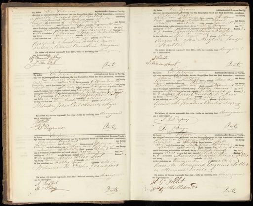 derd Zeven-en-Veertig, Op heden Een februari zijn voor ons ondergeteekende Ambtenaar van den Burgerlijken Stand der Stad Amsterdam, verschenen: Arnoldus Jacobus van der Kaabberg, van beroep Committionar oud negenentwintig Jaren, wonende Stuthuns vade van de Overledene, en Joannes van Dyk van beroep Makelari oud negenen twintig Jaren, wonende pintengract 50 bune van de Overledene, welke hebben gerklaard, dat op eenendertig Januari des voor middags ten Een ure, in het huis, staande mintesgracht Kanton 2, No. 860, is overleden Catharina Johanna van der Krabbers van beroep wonende aldaar in den onderdom van Zevenmaand geboren alhier dochter van Arnoldus Jacobus van der Krabben, en Catharina Anna Maria Brugman En hebben wij hiervan opgemaakt deze Akte, welke na voorlezing door laangenan ons is onderteekend. AJ. Vander Krabben J: Van Dyk Dent mrd Op heden Een februari Achttienhonderd Zeven-en-Veertig zijn voor ons ondergeteekende Ambtenaar van den Burgerlijken Stand der Stad Amsterdam, verschenen: Jan Rugter van beroep schoenmaker oud vijfendertig Jaren, wonende Stuthuis vader van de Overledene, en Willem van de Schaak van beroep schilde oud zesenveertig Jaren, wonende widerstraat d1 benende van de Overledeng, welke hebben verklaard, dat op dertig Jannari des na middags ten vijf ure, in het huis, staande beouwn tad mandrunakenjarss Kanton 3. No. 3, is overleden Cornelia Maria Ruyter van beroep 1 wonende aldaar in den ouderdom van Tien Jaren geboren alhier dochter van Jan Ruijter en Jansje Scholtze En hebben wij hiervan opgemaakt deze Akte, welke na voorlezing door Alaanjevenen ons is onderteekend. J Sruyte. W: Vander Shaaf Deutz Op heden Een Februari Achttienhonderd Zeven-en-Veertig zijn voor ons ondergeteekende Ambtenaar van den Burgerlijken Stand der Stad Amsterdam, verschenen Jan Coemand Knyse van beroe zonder oud drie en veertig Jaren, wonende Geldersche kade 118 beheurd zau van de Overledene (en Adam Pictor siggemeren van beroep poelia oud twindertig Jaren, wonende Jonsumtdaas 109 behend zoon van de Overledene, welke hebben verklaard, dat op Een dertig Januari des voor middags ten half acht ure, in het huis, staande, Jonderstaafje Banen 1 No 109, is overleden Ainna Margaretha Wolk van betoep Londer wonende alsaar in den ouderdom van zevenzeventig Jaren geboren abhier Weduw van Johan Carl Mauritz Meijer En hebben wij hiervan opgemaakt deze Akte, welke na voorlezing door Alaangevenin ons is onderteekend. JBuyk Dert. A V. Poggemeeer Op heden ten teb Achttienhonderd Zeven-en-Veertig, zijn voor ons ondergelechtage Ambtdnaar van den Burgerlijken Stand der Stad Amsterdam, verschenen: Iiman Cie Dupuij van beroep Ffebrikant oud drieenveertig Jaren, wonende Water 1658 zwaser van de Overledene, en, Hendrik Buim van beroep Apotheker oud drie en dertig Jaren, wonende Wiloomstraat 9 bekende van de Overledene, welke hebben verklaard, dat op dertig Januari des na middags ten half vier ure, in het huis, staande teldegracht 11 Kanton 3. No. 6, is overleden Maria Cisabeth de Haas van beroep zonder wonende aldaar in den ouderdom van niegenentwintig Jaren geboren alhier Gehuidd met Françiis Charles Dupuy En hebben wij hiervan opgemaakt deze Akte, welke na voorlezing door Ellaangevenen ons is onderteekend. P. E Dupuij Deutz H: Buijn n actiehonded Zeve e-Veertg, zijn voor ons ondergeteekende (Ambtenaar van den Burgerlijken Stand der Stad Amsterdam, verschenen: Abricham Frankport van beroep zonder oud veertig Jaren, wonende iakenburgentueri 103. bekende van de Overledene, en Moris naad fortuijn van beroep zonder oud vifen vyftig Jaren, wonende Elilenburg 2 benend van de Overledene, welke hebben verklaard, dat op heden des voor middags ten een ure, in het huis, saande houthuizen Kanton 1., No. 113, is overleden Moses Tobias Pool van beroep zoudewonende aldaar in den ouderdom van tachtig Jaren geboren alhier Weduwenaar Van Ester Frankfort En hebben wij bierran opgemaakt deze Akte welke na voorlezing door bidangevund ons is onderteekend. A. Far Jort M. J. Portuun Duitz. Op heden Een februars Achttienhonderd Zeven-en-Veertig, zijn voor ons ondergeteekende Ambtenaar van den Burgerlijken Spand der Stad Amsterdam, verschenen: Hermanus Gregerus Pollet van beroep voodgeetir oud Eenditig Jaren, wonende Hoothuis Sader van de Overledene, en Tanto Gerrrdus Gllebran van beroep schilder oud vifen veertig Jaren, wonende vonder tuy 1 bennde van de Overledene, welke hebben verklaard, dat op Eenndertig Januari des na middags ten acht ure, in het huis, staande Mijkstraat Kanton 1 No. 6, is overleden Hermina Frederika Johanna Tollet van beroep wonende alslaad in den ouderdom van tien maanden (geboren alhier dochter van Hermanus Gregorius Sollet in Hermina Verveld En hebben wij hiervan opgemaakt deze Akte, welke na voorlezing door Ee aangeveren ons is onderteekend. H: S Jouet Hillebrand I. J Duitz: