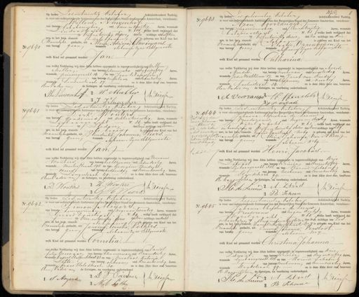No. 9640 Op heden Zesentwintig betaker Achttienhonderd Tachtig is voor ons ondergeteekende Ambtenaar van den Burgerlijken Stand der Gemeente Amsterdam, verschenen: Willenh, Huwenhof. van beroep tabakswerker oud twee enveertig Jaren, wonende in denstraat. No. 115,, welke heeft verklaard dat en Vijfentwintig dezer des na middags ten halftien ure, in het huis, staande t als boven s geboren een kind van het Mannelike geslacht, uit Marya, Adriana, Glavimans, van beroep geen wonende als boven zyne Echtgenoote welk Kind zal genaamd worden Aan. van welke Verklaring wij deze Akte hebben opgemaakt in tegenwoordigheid van Willem Muller, van beroep schommaker oud vijfenvijftig Jaren, wonendeprinsengracht 14.en van Jean Klaassen van beroep merselaar oud Eenenzestig Jaren, wonende Lindenstraat 27. en is deze Akte door ons, benevens den Vader een de Getuigen na voorleiing onderteekend. Weuwenhoff W Muller Driecs No. 9643 Op heden Zesentwintig October Achttienhonderd Tachtig is voor ons ondergeteekende Ambtenaar van den Burgerlijken Stand der Gemeente Amsterdam, verschenen Azon Voorzanger. van beroep zegarenmaker oud eenenveertig Jaren, wonende bataierstraat No. 61 welke heeft verklaard dat oevijfentwintig dezer des na middags ten drie are, in het huis staandealgboven is geboren een kind van het Vrouwelyke geslacht, uit aatje, Oppenheijm.- Talebaven Zyne Echtgenoote van beroep geen wonende welk Kind zal genaamd worden Catharina. van welke Verklaring wij deze Akte hebben opgemaakt in tegenwoordigheid van Mozes, Mendels van beroep merkman oud Eenenzestig Jaren wonende jaden Houbtuinen 17, en van Jacob van Omder van beroep koapman oud veertig Jaren wonende foeliestraat. 34 en is deze Akte door ons, benevens den Vader en de Getuigen, na voorlezing onderteekend. et Voorranger C: Henitils Driecs P J V an Ende No 9641 27 10 Op heden Zesentwintig bitober Achttienhonderd Tachtig is voor ops opdergeleekende Ambtenaar van den Burgerlijken Stand der Gemeente Amsterdam, verschenen. ZLirk, Wouiers. van beroep gondsmid oud achtentwintig Jaren, wonende Lijnbaargracht No. 36, welke heeft verklaard dat opHeden des voor uid dags ten zeven — ure, in het huig, staandeaps boven is gehoren een kind van het mannelijke geslacht, uit Hendrika Johanna, Veers. van beroep geen wonende alsboven zine Echtgenoote welk Kind zal genaamd worden Jan. van welke Verklaring wij deze Akte hebben opgemaakt in tegenwoordigheid van Hermanus Wouters van beroep heildhouwer oud zesendertig Jaren, wonende mesterstraat, 195. en van Georguus Hendrik wierf van beroep bedende oud vierentwintig Jaren, wonende Lingestraat. 49, en is deze Akte door ons, benevens den Vader en de Getuigen, na voorlezing onderteekend. D Wouters 2 H. Wonten Dreessen 3 G H Weers No. 9044 No 1111 Ditkend is door paria Johanna en Aken, bij „te in dato heden het hare erkend geb 1898 Reg 2 /387/1 asterdam 17 Januari 10 acht ennegentig schol Op heden Zesentwintig Octoker Achttienhonderd Tachttig 4 is voor ons ondergeteekende Ambtenaar van den Burgerlijken Stand der Gemeente Amsterdam, verschenen Johanna Curistina de Leeuw a van beroep vroedvrouw, oud negenendertig Jaren, wonende Vijzel gracht., No. 61, welke heeft verklaard da in haar byrunp op vijfentwintig dezer des voormiddags ten Elf n id ure, in het huis staande Gerard Doustraat, nobg is geboren een kind van het mannelike geslacht, urt 1 Maria Johanna van Aken van beroep geen wonende Jalrboven. No 69.- /welk Kind zal genaamd worden Renri, Jacobus. van welke Verklaring wij deze Akte hebben opgemaakt in tegenwoordigheid van drie Lifoast van beroep kruier oud drieenvyftig Jaren wonende Sijnbaangracht 310, en van Barend Gehoen van beroep merkman oud Eenenveertig Jaren, wonende Elandstraat 99 en is deze Akte door bus, benevens de hangeefster en de Getuigen, na voorlezing onderteekend P:le: de Leeuw A Zetdadt Driess 3 B: Schoen No. 9642. Op heden Zesentwintig October Achttienhonderd Tachtig is voor ons ondergeteekende Ambtenaar van den Jareelijken Stand der Gemeente Amsterdam, verschenen: Simon Meyers van beroep timmerman oud negenentwintig Jaren, wonende Gerard Doustraat.— No. 69, welke heeft verklaard dat op vier entwintig dezer des voor middags ten acht jare, in het huis, staandealsbotenJ v een Kind van het vrouwelyke geslacht, uit Jansing, Cornelia, Sothers. van beroep geen wonende als boven zyne Echtgenoote