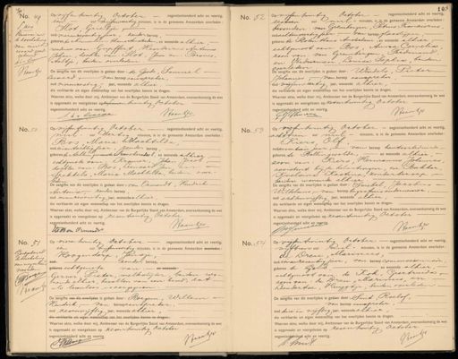 10. 49 ¶ zes Renvooi en de doorhaling van een B woord goed. gekeurd p1a Co Waanten op vijf en twintig October negentienhonderd acht en veertig, een uur vijfenveertig windten, is in de gemeente Amsterdam overleden: Slot, Grietje, D oud vierenzeventig jaar, zonder beroep geboren te Nieuwendam thans Amsterdam, en wonende alhier weduwe van: Gupffert Hendricus Antonius Johan, dochter van: Slot., Jan en: Porsius, Aaltje, beiden overleden De aangtte van dt overlijden is gedaan door: de Goede, Samuel Lernard van beroep aanspreker, oud vierenzestig jaar, wonende alhier die verklaarde uit eigen wetenschap van het overlijden kennis te dragen. Waarvan akte, welke door mij, Ambtenaar van de Burgerlijke Stand van Amsterdam, overeenkomstig de wet is opgemaakt en voorgelezen op zesvenentwintig October negentienhonderd acht en veertig. Haantes A.E lieide No. 52 Op vijfentwintig October negentienhonderd acht en veertig zestien uur Cnul- minuten, is in de gemeente Amsterdam overleden: bevonden: van Grembergen, Petrus Franciocus, oud achtenveertig jaar, van beroep glaadlijper geboren te Slotenthans Amsterdam, en wonende alhier echtgenoot van: Bos, Anna Cornelia zoon van: van Grembergen, Ferdinand, en Verdurmen, Louisa Sophia, beiden overleden De zangete van dt overllden is gedaan door: Wendels, Pieter. Johannes, van beroep aanspreker bud vijfenveertig jaar, wonende alhier die verklaarde uit eigen wetenschap van het overlijden kennis te dragen. Waarvan akte, welke door mij, Ambtenaar van de Burgerlijke Stand van Amsterdam, overeenkomstig de wet is opgemaakt en voorgelezen op zesentwintig October negentienhonderd acht en veertig. Saantj eskenven No. 50 op vijfentwintig October negentienhonderd acht en veertig, nul uur dertig minuten, is in de gemeente Amsterdam overleden: Bos, Maria Dachtilda, oud eenentachtig jaar, zonder beroep geboren te Achtum gemeente Franekeradeel, en wonende alhier echtgenote van: Kramer, Johan Jacob. dochter van: Bos, Leenaard Jan en Spekkels, Maria Machtilda, beiden over- leden De aangiste van dit overlijden is gedaan door: van Ormondt, Hendrik Antonie- zonder beroep oud eenenzeventig jaar, wonende alhier die verklaarde uit eigen wetenschap van het overlijden kennis te dragen. Waarvan akte, welke door mij, Ambtenaar van de Burgerlijke Stand van Amsterdam, overeenkomstig de wet is opgemaakt en voorgelezen op zesentwintig October negentienhonderd acht en veertig Haanden Hled van Oenoodr No. 53 op vijfentwintig October negentienhonderd acht en veertig achttien uur nul minuten, is in de gemeente Amsterdam overleden Kiers Olt oud zeventien jaar, van beroep kantoorbediende; geboren te Bellingwolde, en wonende alhier, zoon van: Kiers, Hermanus Johannes assstent bij de belastingen, en: Bakker, Knelsina Kastina, zonder beroep; beiden wonende alhier. De aangtte van de overlijden is gedaan door: Swiebel, Jacobus Wilhelmus, van beroep begrafnis ondernemer, oud achtenvijftig jaar, wonende alhier. die verklaarde uit eigen wetenschap van het overlijden kennis te dragen. Waarvan akte, welke door mij, Ambtenaar van de Burgerlijke Stand van Amsterdam, overeenkomstig de wet is opgemaakt en voorgelezen op zesentwintig October negentienhonderd acht en veertig. Jnymee Strantj No. 51 Goedgekeurd de doorhaling van negentien woorden 1