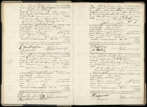 den derden November Ao. 1800 Vier-en-Dertig, ten En verna den middag, t ingeschreven, het AFSTERVEN van Lybrand Wolff Overleden den Eersten deur ten Zes ure, des morp oud zevenvyftig Jaren, wonende brouwerstraat No. 28 Kanton 7en aldaar overleden, Geboren Alhier, beroep Winkel bediende, Gehuwd met Douwe Dirks Japes wender niet leekend de Overledene heeft gen onroerende Goederen nagelaten ij achterlating van Kind Op de verklaring van Gerhardus van Stippen oud tweeveftig Jaren, wonende als boven o 34 Beroep mschoenmaker / gebuur van de Overledene, en van Albertus Bronk oud zendertig Jaren, wonende Als boven N 35 Beroep schuntenvoeder Gebuur van de Overledene, Deze Acte is, na voorlezing, geteekend door beide Getuigen en bevestigd ingevolge de. Wet, door mij, als Withouder, daartoe ingevolge Art. 95 van het Stedelijk Reglement door den Ed. Achtb. Heer Burgemeester benoemd: G van stepper J Hannschupmerug A Bronk terd November Ao. 1800 Vier-en-Dertig, ten twee pren na den middag, is ingeschreven, hetAfSTERVEN 4 van Adam Johannes Antonie Reyding Overleden den tweeden direr ten twee ure, des morgen oud zes Eentieg Jaren, wonende C: Loyersstraat No. 53 Kanton 5 en Alsu overleden, Geboren alhier van Pieter Reyding Therena Cobbens de Overledene heefte onroerende Goederen nagelaten achterlating van Kind Op de verklaring van du vader oud drie vyftig Jaren, wonende als boven Beroep schrenmaker b varder van de Overledene, en van Antonie Perdam 7r oud viendertig Jaren, wonende 2: Loyendw: start 10 Beroep als doven bekende van de Overledene, Deze Acte4s, na voorlezing, geteekend door leerde Getuigen, „ en bevestig. ingevolge de Wet, door mij, ais Vethouder, daartoe ingevolge Art. 95 van het Stedelijk Reglement door den Ed. Achtb. Heer Burgemeester benoemd: P Revving WHtaanescherpeurel A:o Verdan Aerde November Ao. 1800 Vier-en-Dertig Den 8 ten Een ure, na den middag, is ingeschreven, het AFSTERVEN a eertruyda van der Velde Overleden denEersten dezer ten tien ure, des morgen oud Een Kwart- Jaren, wonende buiten Singel pad de Ryser No. Kanton 5, en aldaar teheden Geboren Alhier, van Claas van der Velde Johanna Cornelia van Bentem de Overledene heeft en onroerende Goederen nagelaten achterlating van Kind Op de verklaring van den vader oud vier dertig Jaren, wonende alboven Beroep Ssjier vader van de Overledene on van Otrie van der Velde oud negen vijftig Jaren, wonende als boven Beroep bleker Grootveder van de Overledene Deze Acte is, na voorlezing, geteekend door leeide Getuigen en bevestigd ingevolge de Wet, door mij,als Withonder, daartoe ingevolge Art. 95 van het Stedelijk Reglement door den Ed. Achtb. Heer Burgemeester benoemd: Hlaas Van Der Velte Ave Van den VEEZ Haanmeschumet ven derden November Ao. 1800 Ver-en-Dertig ten twee ure, na den middag, is ingeschreven het AFSTERVEN vanZannetje Brinkman Overleden den Eenste derr ten zeven ure, des morgens oud negendertig Jaren, wonende yne Kattenburgenwark No. 82 Kanton en aldaar overleden, Geboren Alhier geenberoep, Gehuwd met Hendrik Schuumer, verder niet beekende de Overledene heeft Ten onroerende Goederen nagelaten met achterlating van Kind Op de verklaring van den man„ oud twee dertig Jaren, wonende als boven varen Spuer man vlde oveledere, en van Cornelis BBruyns oud Cenvertig Jaren, wonende vier winderstrat n1. Beroep timmane zn de Overedee. Deze Acte is, na voorlezing, geteekend door derde Getuigen, en bevestigd ingevolge de Wet, door mij, als Vethouder, daartoe ingevolge Art. 95 van het Stedelijk Reglement door den Ed. Achtb. Heer Burgemeester benoemd: N gehrinmer V: Haan Scherpeerls C: Bruyne