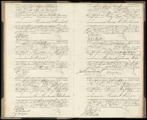 Op heden Twintig Juni Achttienhonderd Zestig, HeenA ee verschenen: Hinrich Peters Juliers van beroep ambtenaar oud vyfenveertig Jaren, wonende Lindengracht. Buurt Jp No. 27, welke heeft verklaard dat op achttiendezer des na middags ten Vier ure, in het huis, staande, als boven is geboren een Lind van het vrouwelijke geslacht, uit Louiza Isabella Broeker, van beroep geen wonende als bovenzine Echtgenoot worden Hendrika Elisabeth welk Kind zal gene van welke Verklaring aan deze, Akte hebben opgeslaakt in tegenwoordigheid van Cornelis Coenradus koning van beroepcheepsbevrachte oud twee en veertig Jaren, wonende Barberstraat A. 101, en van Wynand Schuurink van beroep schipper oud vierenviftig Jaren wonende te stavoven en is deze Afte door ans benevens den vader en de Getuigen na voorlezing onderteekend. H Billeg A HG Cb. Koping Op heden Twintig Juny Achttienhonderd Zestig is voor ons ondergeteekende Aphtenhar van den Bargerlijken Hand der Stad Amsterdam, verschenen eerkant P Prenas. van beroep tkaarsenmaker oud drieenveertig Jaren, wonende zwartehandsteeg Buurt H. No. 303 Aelke heeft verklaard dat op negentien, dezer des namiddags ten Elf ure, in het huis, staande Valboognn is geboren een kind van het Vrouwelijke geslacht, uit Anna Maria van Diest. van beroep geen wonende als boven: zijne Echtgenoot „welk Kind zal genaamd worden Anna Wilhelmina. van welke Verklaring wij deze Akte hebben opgemaakt in tegenwoordigheid van Andries Ciit van beroep werkman oud negenenderti J aren, wonende keizerrijk f 165, en van Hermanus Johannes George Christiari van beroep werkman oud drieendertig Jaren wonende Engelishesteeg Y 446, en 4 deze Akte door ons benevens den vader en de Getuigen, na merlezing onderteekend Getrende 11 mrK tig prestiani Op heden Twintig Juni Achttienhonderd Zertig, is voor ons ondergeteekende Ambtenaar van den Burgerlijken Stand der Stad Amsterdam, verschenen: 41 Frans Riehe. van beroep winkelier oud zesendertig Jaren, wonende hrinsengracht. Burt O0, No 686, welke heeft verklaard dat op zeventien dezer des middags ten twaalf ure, in het huis, staande alsboven is geboren een Kind van het Mannelijke geslacht uit AnnaCatharina Nierkelyn van beroep geen wonende als boven, zijne Echtgepoot welk Kind zal genaamd worden Dirk van welke Verklaring wij deze Akte hebben opgemaakt in tegenwoordigheid van Hermanus de Lang van beroep metzelaar oud drieenzeventig Jaren, wonende kaurierstraat El591, en van Jerenuas van dongen van beroep tapper oud drie en viftig Jaren, wonende prinsengracht ft 547. en is deze Akte hoorpom, benevens den vader de Getuigen, ta voorlezing onderteekend. F. Piepe Meg H De Lang ngen Op heden,Een en twintig Juny Achttienhonderd Zestig, is voor ons ondergeteekend Ambtenaar van den Bargerlijkken Stand der Stad Amterdam, verschenen: Jan Brouwer Ancher van beroep kassier oud zesendertig Jaren, wonende Rokin Buurt D. No. 103welke heeft verklaard dat op Twintig dezer des na middags ten drie 8 ure, in het huis, staande alsboven s geboren een Kind van het Vrouwelijke geslacht, uit Constantia Isabella Aletta Rubertina„ van beroep geen wonende als hoven: zijne Echtgenoot Veeningh velk kind in gerend aade Geertruida Johanna Maria van welke verklaring vij deze Akte hebben opgemaakt in tegenwoordigheid van Jan George Maria Hanco van beroep ned: doeter oud negen en twintig Jaren, wonende Warmoesgracht 2257, en van Johannes Hubertus Janssen van beroep ambtenaar oud drieendertig Jaren wonende Weteringstraat BB 104 en is deze Akte door oks benevens den Vader en de Getuigen, na voorlezing onderteekend. Jan Brouwe Anchers P K Heeleerteseenssen J. G.M. Hanle Op heden Twintig Juny Achttienhonderd Zestig is voor ons ondergeteekende Ambtenaar van den Burgerlijken Stand der Stad Amsterdam, verschenen Antonie Alderding van beroep schuitenvoerder oud twee en veertig Jaren, wonende dirko Hasseltstug Buurt H. No. 573 e heeft verklaard dat op achttiendezer desoor middags ten zeven ure, in het huis, staande als boven Sbbboren ten Kindvan het Vrouwelijke geslacht, uit JJohanna Maria Kruyshaar van beroep geen wonende als boven: zyne echtgenoot welk Kind zal genaamd worden Maria Geertruida Vilhelmina. van welke Verklaring wij deze Akte hebben opgenaakt in tegenwoordigheid van Hendrik Marberts van beroep schuitenvoerder oud vijfenzeventig Jaren, wonende Zeedik M 142. en van Jan Govert Bordeon van beroep als hoven oud zesendertig Jaren wonende Aujelierstraat 00 260, en is deze Aftedoor ons benevens den vaderrre de Getuigen, na voorlezing onderteekend. A. Aldering H Harberts n G. Borgson Op heden Eenentwintig Juny Achttienhonderd Zestig D , e Dirk van Loos van beroep werkman oud zevenendertig Jaren, wonende kadijk Buurt 11, No1658, walke heeft verklaard dat Twintig dezer zes voor Lddags ten zes Jre, in het huis, staande als boven i geboren een kind van het mannelijke geslacht, uit Maria Bakker van beroep geen wonende als bovens zine Echtgenoot. ,welk Kind zal genaamd worden Hendrik Simon. van welke Verklaring wij deze Akte hebben opgemaakt in tegenwoordigheid van Adonham Heyjne van beroep sjauwer oud negenentwintig Jaren, wonende kidderstraat N 269. n van Johan Warner Leerink van beroep sjeuwer oud zevenendertig Jaren, wonende Kadik 4. 618. en is deze akte door ons bezevens den vader en de Getuigen, na voorlezing onderteekend D Van Looy Ceg Heyne 1 J W Seerink