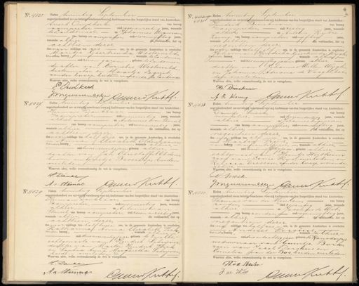 No. 4025 Heden twintig september negentienhonderd zes en twintig verschenen voor mij Ambtenaar van den burgerlijken stand van Amsterdam Evert Oudkerk, van beroep aanspreker oud negenenzestig jaren, wonende te Landsmeer, en Johannes Ingwveisen van beroep aanspreker, oud vierenvijftig jaren wonende alhier, die verklaarden, dat op achttien dezer, des voor middags ten zes ure, in de gemeente Amsterdam is overleden Maritje Geertruida Westerveld, zonder beroep,, wonende te Landsmeer -oud zeven jaren-, geboren te Landsmeer, dochter van Cornelis Westerveld kistenmaker, en laartje Lequit zonder beroep, beiden wonende te Landsmeer Waarvan akte, welke overeenkomstig de wet is voorgelezen. E Oudkerte J: Meiverseneitje Kukbf. No. 4820 48311 9 Heden twintig September negentienhonderd zes en twintig verschenen voor mij Ambtenaar van den burgerlijken stand van Al Hendrik Princkman, van beroep Laanspreker, oud zestig jaren, wonende alhier, en Antonie Rijtze Konmg, van beroep aanspreker, oud vijftig jaren, wonende alhier, die verklaarden, dat op negentien dezer des vooor middags ten half, alf ure, in de gemeente Amsterdam is overleden Johanna - Hendrika Geertruida Wijgh zonder beroep,, wonende alhier, oud zesenvijftig jaren, geboren alhier, dochter van- Johannes Willem Wijgh en Johanna Adriana de Voogel, bei den overleden Waarvan akte, welke overeenkomstig de wet is voorgelezen. H. Brinckman Caum Kuktef. A.R. Koning. No 4827. Heden twintig September negentienhonderd zes en twintig verschenen voor mij Ambtenaar van den burgerlijken stand van Amsterdam: Herman Dankbaar, van beroep aanspreker, oud eenenveertig Jaren, wonende alhier, en Antonius van Steensel van beroep aanspreker, oud zevenenzestig jaren wonende alhier, die verklaarden, dat op achttien dezer des voor middags ten half drie ure, in de gemeente Amsterdam is overleden Anna- Elisabeth Oldenboom, zonder beroep,, wonende alhier — oud tweeenzeventig jaar, geboren alhier dochter van Jan Christoffel Olden„ boom en Grietje Bisschap, beiden overleden. Waarvan akte, welke overeenkomstig de wet is voorgelezen. H. Danke Guunis Kerkhef. A F Hsensel No. 4033 Heden twintig September negentienhonderd zes en twintig verschenen voor mij Ambtenaar van den burgerlijken stand van Amsterdam Lauid Snoek, van beroep winkelier, oud tweeendertigg Jaren, wonende alhier, en Johannes Ingwversen, van beroep aanspreker, oud vierenvijftig jaren wonende alhier, de verklaarden, dat op negentien dezer, des na middags ten elf ure, in de gemeente Amsterdam is overleden Hartog Prijs van Beroep diamantslijper,, wonende alhier, oud tweeenvijftig jaar, geboren alhier echtgenoot van: Heintje Wertheim zoon van Levie Prijs, overleden, en Rebecia Dresson, zonder beroep, wonende alhier, Waarvan akte, welke overeenkomstig de wet is voorgelezen. l Moek. Jvywersenleeg Geur Kuthef. No. 4829 Heden twintig September negentienhonderd zes en twintig verschenen voor mij Ambtenaar van den burgerlijken stand van Amsterdam: Heman Dankbaar, van beroep ranspreker, oud eenenveertig jaren, wonende alhier, en Antonius van Steensel, van beroep aampreker, oud zeven enzestig aren wonende alhier, die verklaarden, dat op achttien dezer, des voor middags ten halftrijer ure, in de gemeente Amsterdam is overleden Katharina Anna Elizabeth Pick zonder beroep,, wonende alhier oud drie enzeventig jaar, geboren te zwolle, echtgenoote van Hendrik Schrijver, dochter van Marten Hendrik Fick en Sophia Anna Margaretha Schrijver beiden overleden. Waarvan akte, welke overeenkomstig de wet is voorgelezen. H. Daezen v Sood uidpertief. No. 4835. Heden twintig September negentienhonderd zes en twintig verschenen voor mij Ambtenaar van den burgerlijken stand van Amsterdam: Thomas van der Reulen, van beroep zonder, oud zeventig jaren, wonende alhier, en Jacobus de Wit van beroep zonder, oud negenenvijftig jaren wonende alhier die verklaarden, dat op negentien dezer, des na middags ten half zes ure, in de gemeente Amsterdam is overleden Andries Porsius wonende alhier zonder beroep oud drie entachtig jaar geboren te Ransdorp weduwnaar van Guurtje Bork zoon van Jacob Porsius en Cornelia van der Bos, beiden overleden Waarvan akte, welke overeenkomstig de wet is voorgelezen. T Th vd. Heulen J de Win Cum Kubtet „