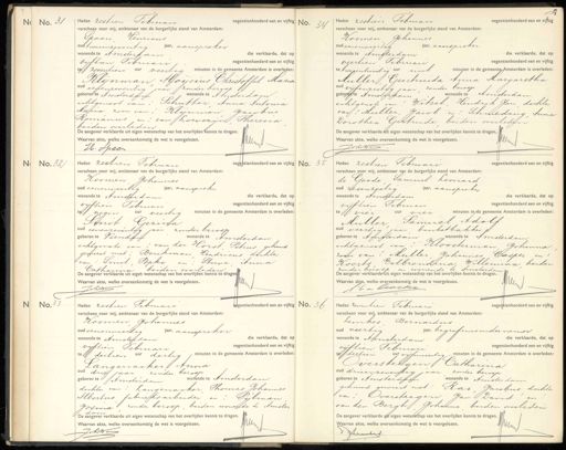 Heden zestien Februari negentienhonderd een en vijtig, verscheen voor mij, ambtenaar van de burgerlijke stand van Amsterdam: Spaan, enricus oud tweeenzeventig Jaar, aanspreker wonende te Amsterdam de verklaarde, dat op viftien Februari negentienhonderd een en vijftig te zeventien uur veertig windten in de gemeente Amsterdam is overleden: Klijnman Hloysius Christoffel Maria oud eenenzeventig jaar zonder beroep geboren te Amsterdam wonende te Amsterdam echtgenoot van: Schutter, Anna Antonia Maria zoon van; Klijnman Jacobus Romanus en; van Loevezijn, Theresia beiden overleden De aangever verklaarde uit eigen wetenschap van het overlijden kennis te dragen. Waarvan akte, welke overeenkomstig de wet is voorgelezen. Rruns H. Spaan Heden zestien Februari negentienhonderd een en viftig verscheen voor mij, ambtenaar van de burgerlijke stand van Amsterdam: Koomen Johannes oud eenenveertig jaar, aanspreker wonende te Amsterdam die verklaarde, dat of veertien Februari negentienhonderd een en vijftig te tweeentwintig var nul mindten in de gemeente Amsterdam is overleden Muller, Geertruida Anna Margaretha oud vijfenzestig jaar zonder beroep geborente Amsterdam, wonende te Amsterdam echtgenote van "Witsel Hendrik Jan dochter van: Muller, Jacob en: Schmeding, Anna Dorothea Gertrude beiden overleden De aangever verklaarde uit eigen wetenschap van het overlijden kennis te dragen. Waarvan akte, welke overeenkomstig de wet is voorgelezen. erns LvkWa No.32 Heden zestien Februari negentienhonderd een en vijftig verscheen voor mij, ambtenaar van de burgerlijke stand van Amsterdam Koomen Johannes oud eenenveertig jaar, aanspreke die verklaarde, dat op wonende te Amsterdam. vijftien Februari negentienhonderd een en vijfig te negen uur veertig minuten in de gemeente Amsterdam is overleden. Sinit Gezina oud eenenzeventig jaar zonder beroep geboren te Veendam wonende te Amsterdam echtgenote van: van der orst Petrus gehuwd geweest met: Beukman Cendricus dochter van: Smit, Popko en: Stuve, Atnna Catharina beiden overleden De aangever verklaarde uit eigen wetenschap van het overlijden kennis te dragen Waarvan akte, welke overeenkomstig de wet is voorgelezen. Je JcWo Heden zestien Februari negentienhonderd een en vijtig verscheen voor mij, ambtenaar van de burgerlijke stand van Amsterdam de Goede, Samuel Leonard oud zesenzestig jaar, aanspreken die verklaarde, dat op wonende te Amderdam. vijftien Februari negentienhonderd een en vijtig te vier uur vier minuten in de gemeente Amsterdam is overleden. Muller Samuel Adol oud veertig jaar banketbakker geboren te Amsterdam wonende te Amsterdam echtgenoot van :Kloosterman Johanna zoon van " Muller Johannes Casper en Koerts Eelbrendina, Willemina beiden zonder beroep en wonende te Amsterdam De aangever verklaarde uit eigen wetenschap van het overlijden kennis te dragen. Waarvan akte, welke overeenkomstig de wet is voorgelezen. Jen 1h lwedie Heden zestien Februari Negentienhonderd een en vijftig verscheen voor mij, ambtenaar van de burgerlijke stand van Amsterdam: Koomen Johannes oud eenenveertig jaar, aanspreker die verklaarde, dat op wonende te Amsterdam viftien Februari negentienhonderd een en vijftig te dertien uur dertig, winuten in de gemeente Amsterdam is overleden, Langenacker Anna oud drie jaar zonder beroep geboren te Amsterdam wonende te Amsterdam dochter van " Langenacker Thomas Johannes Albertus fabrieksarbeider en: Pijlman Josina zonder beroep, beiden wonende te Amster dam De aangever verklaarde uit eigen wetenschap van het overlijden kennis te dragen. Bun Waarvan akte, welke overeenkomstig de wet is voorgelezen. JikWe No. 36 Heden zeventien Februari negentienhonderd een en vijftig verscheen voor mij, ambtenaar van de burgerlijke stand van Amsterdam: temker Bernardus oud veertig jaar, begrafenis ondernemer wonende te Amsterdam die verklaarde, dat o vijftien Februari negentienhonderd een en vijftig s dertien uur vijfenveertig winuten in de gemeente Amsterdam is overleden Oversteegen Catharina oud drieenzeventig jaar zonder beroep geboren te Amsterdam wonende te Amsterdam gehuwd geweest met: Ras Jacobus dochter van Oversteegen Jan David en van den Bergh Johanna beiden overleden De aangever verklaarde ut eigen wetenschap van het overlijden kennis te dragen. Waarvan akte, welke overeenkomstig de wet is voorgelezen. Wm Hennder