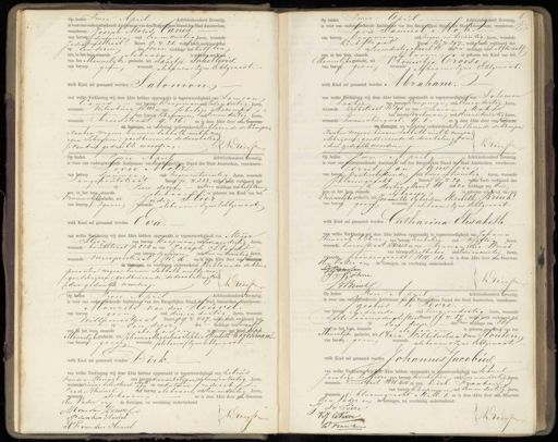 Op heden Twee April Achttienhonderd Zeventig, is voor ons ondergeteekende Ambtenaar van den Burgerlijken Stand der Stad Amsterdam, verschenen: Joseph Mozes, Canes van beroep sjotuwer oud Eenenveertig Jaren, wonende Jodenbreedstraat Buurt 9, No. 21, welke heeft verklaard dat op Een dezer, des voor middags ten half ten ure, in het huis staande als boven is geboren een zind van het Mannelijke geslacht, uit Saartje Schelleiis van beroep geen wonende als boven zijne Echtgenoot. welk Kind zal genaamd worden Salomon van welke Verklaring wij deze Akte hebben opgemaakt in tegenwoordigheid van Samsan lanis van beroep kaapman oud zesendertig Jaren, wonendeUilenburg N. 103 en van Chilip Rezemer van beroep Koopman oud Eenendertig Jaren wonende Vbriedstraat 9. 36, en is deze Akte door ote benevens — de Getuigen, na voorlezing onderteekend Verklarinde de Kompa„ „ranten wegens hunnen Labbath met te mi „gen schryven, goedkeurende de doorhalin Driessen „ van drie gedrukte woorden Op heden Twee April Achttienhonderd Zeventig, is voor ons ondergeteekende Ambtenaur van den Burgerlijken Staad der Stadkmsterdam, verschenen: Levie Samuel Mok. van beroep koopman oud negen en twintig Jaren, wonende Kerkstraat Buurt W No. 297., welke heeft verklaard dat op Eenendertig Maart des na middags tenhals twaalf ure, in het huis, staande lboving1 is geboren een Kind van het Aannelijke geslacht, uit Vrouwtje Proese van beroep geen wonende als boven zijne Echtgenoot. welk Kind zal genaamd worden Abraham. van welke verklaring wij deze Akte hebben opgemaakt in tegenwoordigheid van Patomon daotje van beroep kaopman oud Eenendertig Jaren, wonende Kertstraat N 295 en van Simon Mok van beroep werkman oud drieentwintig Jaren, wonende Swanenburgwal, 9.1, en is deze Akte door ons Brunnens de Getuigen na voorlezing onderteekend verklarende de Compa„ „ranten wegens hunnen Sabbath niet te mogen „schrijven, goedkeurende de doorhaling van Driessen „drie gedrukte woorden. Op heden 1 Twee April Achttienhonderd Zeventig is voor ons ondergeteekende Ambtenaar van den Burgerlijken Stand der Stad Amsterdam, verschenen: evie Melz van beroep sjouwer oud negenentwintig Jaren, wonende Langehoutstraat Buurt 7. No. 333, welke heeft verklaard dat op Twee dezer des voor middags ten half Een ae, in het huig, staande als boven, is geboren een kind van het vrouwelijk geslacht, uit. Judic Suer van beroep geenwonende als boven: zyne Echtgenoot welk Kind zal genaamd worden Eva- van welke Verklaring wij deze Akte hebben opgemaakt in tegenwoordigheid van Meijer Slier van beroep koopman oud zevenendertig Jaren, wonende houtstraat p 324 en van Jooeph Stade van beroep sjaurver oud drie entwintig Jaren, wonende Meesperstraat WW. 16 en is deze Akte door ons huene —de Geuigen, na voorlezing onderteekend. Verklarende de kom„ „paranten wegens hunnen Sabbath niet te mo „genschrijven, goedkeurende de doorhaling van „drie gedrukte woorden Driessen Op heden Twee April Achttienhonderd Zeventig is voor ons ondergeteekende Ambtenaar van den Burgerlijken Stand der Stad Amsterdam, verschenen Gerrit Jan Janssen van beroep kantoorbediende oud tweeentwintig Jaren, wonende bloemgracht Buurt D D No. 29, wonte heeft verklaard dat dertig Maart l des na middags ten drie ore, in het huig, staande alsboven is geboren een kind van het Vrouwelijke geslacht, uit Jannette Egberdine Elisabeth Brink. van beroep geen wonende als bovenstijne Echtgenoot welk Kind zal genaamd worden Catharina Elisabeth van welke Verklaring wij deze Akte hebben opgemaakt in tegenwoordigheid van Enhann Heinrich Köhne van beroep winkelier oud vijftig Jaren, wonende beerenstraat 1k412 en van Bernardus Brink van beroep apotheker oud tweeenveertig Jaren, wonende, prinsengrachtHH. 260. en is deze Akte door ote benevens den vader een de Getuigen, na voorlezing onderteekend. GJ Janssen J HKohne Driessen BBrink Op heden Twee April Achttienhonder Zeventig, is voor ons ondergeteekende Ambtenaar van den Burgerlijken Stand der Stad, Amsterdam verschenen: Mourits van den Heuvel van beroep geen oud drie en dertig Jaren, wonende Willemsstraat Buurt 9 9. N. 717, welke heeft verklaard dat open dezer des middags ten twaalf ure, in het huis, staandeals bovin is geboren een hand Ane Mannelyke geslacht, uit Johanna Magdalena Saphia Elisabeth Kirchman.- van beroep gean wonende Galsbovenzine Echtgenoot.