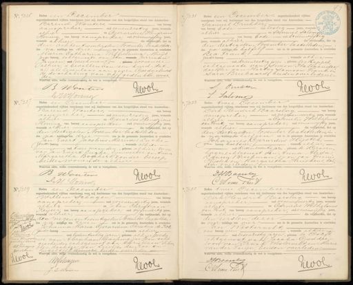 No. 7225 Heden een December negentienhonderd vijftien verschenen voor mij Ambtenaar van den burgerlijken stand van Amsterdam Barend Wouters, van beroep aanspreker, oud eenenzestig jaren, wonende alhier en Gerardus Hendricus Koning, van beroep aanspreker oud vierenvijftig jaren wonende alhier, die verklaarden, dat op den achtentwintigsten November laatstleden des na middags ten drie ure in de gemeente Amsterdam is overleden Maria Catharina Wilhelmina Muijs zonder beroep, echtgenoote van Johan, wonende Jrriaan Jansen, oud werkman, geboren wonende alhier, is bevallen van een kind, dat zij als levenlaos aangeven. Goedgekeurd de doorhaling van vijf gedrukte woorden. Waarvan akte, welke overeenkomstig de wet is voorgelezen. 1 B Wouter Wwol G WHoning Heden een December negentienhonderd vijftien verschenen voor mij Ambtenaar van den burgerlijken stand van Amsterdam: 130 Sanuel Drukker, van beroep bode oud zestig jaren, wonende Foy alhier en Samuel Saloman -e van beroep bode oud drieenvijftig Jaren, wonende alhier die verklaarden, dat op den dertigsten November laatstleden des na middags ten half elf ure in de gemeente Amsterdam is overleden Lea Frank wonende alhier Genderderen oud drieenzestig jaren, geboren te Meppel echtgenoote van Simon Saliaander dochter van Hartog Samson Frank en Sara Breebaard, beiden overleden.Waarvan akte, welke overeenkomstig de wet is voorgelezen. . Vukker Keool No. 722 Heden een December negentienhonderd vijftien verschenen voor mij Ambtenaar van den burgerlijken stand van Amsterdam Barend Wouters, van beroep aanspreker, oud eenenzestig jaren, wonende alhier en Gerardus Hendricus Honno van beroep aanspreker oud vierenvijftig jaren wonende alshier die verkraarden, dat op den dertigsten November laatstleden des na middags ten drie ure in de gemeente Amsterdam is overleden Jan Evert Jacobus Marinus Zucke zonder beroep, wonende alhier oud twee maanden, geboren alhier, zo on van Jan Evert Lugke lynwerker en Anna Margaretha Bosschert zonder beroep, beiden wonende alhier Waarvan akte, welke overeenkomstig de wet is voorgelezen. B Wouler — WW00 GH Uonma o. 7233 Heden twee December negentienhonderd vijftien verschenen voor mij Ambtenaar van den burgerlijken stand van Amsterdam: Dirk Hendrik Baarslag, van beroep aanspreker, oud negenenveertig jaren, wonende alhier en Cornelis Wilhelmus van sent, van beroep aanspreker, oud eenenvijftig jaren, wonende alhier die verklaarden, dat op den dertigsten ovember laatstleden des na middags ten half een ure in de gemeente Amsterdam, is overleden Johannes Gerardus Hijstek, van beroep koetsier, wonende alhier, oud drieenzeventig jaren, geboren te 's Gravenhage, echtgenoot van Anna Alida Louisa Broekman, zoon van Tennis Hystek en Margaretha Huiskens, beiden overleden. Waarvan akte, welke overeenkomstig de wet is voorgelezen. DH Baarleg Kevols CW van Cert No. 1229 PMMeinershagen vooi goed gekeurden de door 1 1eerst daarnaG Twee Renvooie goedgekeurd. W Schagen JKeijken. 1 Heden een December negentienhonderd vijftien verschenen voor mij Ambtenaar van den burgerlijken stand van Amsterdam; Willem Schagen, van beroep aanspreker, oud negenendertig jaren, wonende alhier en Johan Christiaan Reijzer van beroep aanspreker, oud vijfendertig jaren „ wonende alhier, die verklaarden, dat op inden negenentwintigsten November laatstleden, des na middags ten zeven ure in de gemeente Amsterdam is overleden Johanna Maria Gerardina Christina de Kolzonder beroep, wonende alhier oud tweeentachtig jaren, geboren alhier wedu renwe van Abraham Cassemeijer van echt gescheiden echtgenoot van Christiaan scha ten, dochter van Luitjen de Roe en ngeltsettleners, beiden overleden Waarvan akte, welke overeenkomstig de wet is voorgelezen. WSchargen Kevols J. C. Keijs7935 Heden twee December negentienhonderd vijftien verschenen voor mij Ambtenaar van den burgerlijken stand van Amsterdam: Dirk Hendrik Baarslag, van beroep aanspreker oud negenenveertig jaren, wonende alhier en Cornelis Wilhelmus van Pent van beroep aanspreker oud eenenvijftig jaren wonende alhier, die verklaarden, dat op den eersten dezer des voor middags ten vier ure in de gemeente Amsterdam is overleden Jan Westervelt, van beroep geen, wonende alhier oud zesenzestig jaren, geboren te Deeft, Echtgenoot van Jacoba Goddee zoon van Izaak Westervelt en Maria van der Tuyn beiden overleden. Waarvan akte, welke overeenkomstig de wet is voorgelezen. DJBaanlen nlOG C.W van Pent