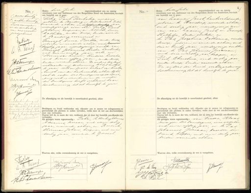 A. B. Vorr JL Terwoge J Le torensteer dive ik HGBerne domel Echtscheiding, uit gesproken bij vonnis der Rechtbank te Amster dam van 7 April 1955 ingeschreven te Amsterdam heden 6 September 1955. A. Zuiden Heden twee Juli negentienhonderd een en veertig verschenen voor mij, Ambtenaar van den Burgerlijken Stand van Amsterdam, ten einde een huwelijk aan te gaan: Seelig, Paul Paribatra, musicus twonende alhier, oud vijfententig Jaar getoren te Bandoeng in Nederlandsch- Indie meerderjarige zoon van: Veelig Paut Johann koopman, en: Alberti Louise Mathilda, zonder beroep beiden wonende te Bandoeng, voornoemd en Gerroogt Anna Bertha, zonder beroep, geboren en wonende alhier oud zeven twentig jaar meerderjarige dochter van Versoogt, Johannes Hester Lambertus, oud drie en zestig jaar arts en Storm van Leeuwen Hendrica Lucreha oud twee en vijfti jaar, zonder beroep beiden wonende alhier. De ouders der bruid verklaarden mij bestemming tot dit huwelijk te geven. Uit een proces-verbaal van woschen komst van den kaatanrechter alhier blijkt dat de vader des bruidegoms op de oproe „king niet is verschenen en de moeder des bruidegoms heeft verklaard haar toestemming tot dit huwelijk te geven De afkondiging tot dit huwelijk is onverhinderd geschied, alhier Bruidegom en bruid verklaarden mij, elkander aan te nemen tot echtgenooten en getrouwelijk alle plichten te zullen vervullen, welke door de wet aan den huwelijken staat zijn verbonden. Daarop heb ik, in naam der wet, verklaard, dat zij door het huwelijk aan elkander zijn verbonden. Ads getuigen waren tegenwoordig: Schr Albertus Johannes Adrianus leeraar, oud vier en dertig jaar, wonende alhier, en: Beesink, Herman Johan koopman, oud een en dertig jaar, wonende te Gorssel Waarvan akte, welke overeenkomstig de wet is voorgelezen. No. 10 Heden twee Juli negentienhonderd een en veertig verschenen voor mij, Ambtenaar van den Burgerlijken Stand van Amsterdam, ten einde een huwelijk aan te gaan: van Zaanen Jacob kantoorbediende getoren te Ransdorp, wonende alhier, oud dertig jaar meerderjarige zoon van: van Zaanen, Jacob en: Tromp, Hilletje, beiden overleden en te Sas, Josephina Catharina, zonder beroep geboren en wonende alhier, oud drie en twintig Jaar meerderjarige dochter van: te Pas Johannes Jurriaan, oud drie en zestig jaar, kapper en: Peil Christina oud zestig par zonder beroep beiden wonende alhier. De oeders der bruid verklaarden mi toestemming tot dit huwelijk te geven De afkondiging tot dit huwelijk is onverhinderd geschied, alhier Bruidegom en bruid verklaarden mij, elkander aan te nemen tot echtgenooten en getrouwelijk alle plichten te zullen vervullen, welke door de wet aan den huwelijken staat zijn verbonden. Daarop heb ik, in naam der wet, verklaard, dat zij door het huwelijk aan elkander zijn verbonden. Als getuigen waren tegenwoordig: van Vuire Klaas zwager zes bruidegoms, measseerder oud een en vijftig jaar en: te Pas, Johannes Juriaan broeder der bruid kopper oud een en dertig jaar beiden wonende alhier 110 om cn
