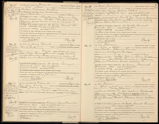 No. 25 Jacht renvooi den de doorhaling vd van eengwoorden goedgekeurd. W 16 Haarte op een en dertig December negentienhonderd negen en veertig drie uur tien minuten, is in de gemeente Amsterdam overleden: i Stukker, Pieterdina Wubbina en oud acht en dertig jaar, zonder beroep geboren te Castricum en wonende alhier echtgenote van: Muntenaar, Johannes Francisius, dochter van: Stikker, Pieter Gerrit en, SlikJohanna, beiden zonder beroep en wonende te tekmaar De aangite van dt overlijden is gedaan door: de Goede, famnel Leonard, zonder van beroep aanspreker oud vier en zestig jaar, wonende alhier die verklaarde uit eigen wetenschap van het overlijden kennis te dragen. Waarvan akte, welke door mij, Ambtenaar van de Burgerlijke Stand van Amsterdam, overeenkomstig de wet: is opgemaakt en voorgelezen op drie Januari negentienhonderd negen en veertig. 14 - Geide Hranfes No. 28 C„vier en zestig, pen voor en de doorhaling van drie woorden goedgekeurd. J-lv Haark op twee Januari negentienhonderd negen en veertig, len uu derdig — minuten, is in de gemeente Amsterdam overleden: . van der Kaay, Gesina Sophia oud vijf en vijftig jaar, van beroep winkeliersten geboren 2 en wonende alhier gehuwd geweestmet: smits, Jan Barend Antonius dochter van van der Kaaij, Johannes en: de Jong, Gesina Sophia, beiden overleden. Ge aangste van dit overlijden is gedaan door: de Goede, Samuel zeonard van beroep aanspreker. oud vijfenvijftig jaar, wonende alhier die verklaarde uit eigen wetenschap van het overlijden kennis te dragen. Waarvan akte, welke door mij, Ambtenaar van de Burgerlijke Stand van Amsterdam, overeenkomstig de wet is opgemaakt en voorgelezen op drie Januari negentienhonderd negen en veertig. Haanke d be Goede No. 26 (acht pen. voor en de door: haling van vier en twintig woorden Goedgekeurd phe le Kaante op een en dertig December negentienhonderd negen en veertig „ 405 nul. minuten, is in de gemeente Amsterdam overleden: Broek, fatharina a oud zonder beroep, echtgenote van geboren Meijer, Herman Heinrich en wonende Wilhelm metaalbew erker, beiden wonende alhier, beVallen van den kinddat ale zevendooo en aangegeven De vangste van dit overlijden is gedaan door: de Goede SamuelLeonard, van beroep aanspreker oud vier en zestig jaar, wonende alhier die verklaarde uit oigen wetenschap van het overlijden kennis te dragen Waarvan akte, welke door mij, Ambtenaar van de Burgerlijke Stand van Amsterdam, overeenkomstig de wet is opgemaakt en voorgelezen op drie Januari negentienhonderd negen en veertig H. be lede Baantss No. 29 op een Januari negentienhonderd negen en veertig, drie uur dertig minuten, is in de gemeente Amsterdam overleden: van Veelen, Johannes Cornelis oud vier en zeventig jaar, zondeeroep— geboren en wonende alhier echtgenoot van: Welter, Gesina Maria Wilhelmina zoon van: van Veelen, Cornelie en: Offerman, Johanna Francina, beiden overleden. De aangifte van dit overlijden is gedaan door: de Goede, Samnel Levuard, van beroep aanspreker. oud vier en zestig jaar, wonende alhier. die verklaarde uit eigen wetenschap van het overlijden kennis te dragen. Waarvan akte, welke door mij, Ambtenaar van de Burgerlijke Stand van Amsterdam, overeenkomstig de wet is opgemaakt en voorgelezen op drie Januari negentienhonderd negen en veertig. V.6- lwede Mrants 2 reb wonende alhier twee renvooien en de „doorhaling van vijf en twintig woorden goed Gekeurd. J Walen Hampp P. Meek renvoo en de doorhaling van een woord gud. gekeurd. A. Jeubren Haantjs op een en dertig December negentienhonderd negen- en veertig, zes uur mul minuten, is in de gemeente Amsterdam overleden: Heek, Geanne Dirkima. oud zonder beroep, bevallen van geboren een kind, dat als levenloos en wonende 1s aangegeven Og daeite van d etedene wdoor: Wouters, Petrus Franciscus Adrianus van beroep marktkoopman oud vier en veertig jaar, wonende alhier die verklaarde uit eigen wetenschap van het overlijden kennis te dragen. Waarvan akte, welke door mij, Ambtenaar van de Burgerlijke Stand van Amsterdam, overeenkomstig de wet, is opgemaakt en voorgelezen op drie Januari negentienhonderd negen en veertig. Haortj P. Woaken No. 30 op een Januari negentienhonderd negen en veertig tive vue nul mindten, is in de gemeente Amsterdam overleden: van Joolen, Bertus Johannes oud zeven en veertig jaar, van beroep sid-bankwerker. 290 rechtgenoot van: Wierema Lrert, alhier zoon van: van Joolen, Johannes Hermanus en. stioef, Adriana Theodora Johanna, beiden overleden De aangtte van dit overlijden is gedaan door: de Goede, Samuel Leonard van beroep aanspheker oud vier en zestig jaar, wonende alhier die verklaarde uit eigen wetenschap van het overlijden kennis te dragen. Waarvan akte, welke door mij, Ambtenaar van de Burgerlijke Stand van Amsterdam, overeenkomstig de wet is opgemaakt en voorgelezen op diie Januari negentienhonderd negen en veertig. Hrante At. le