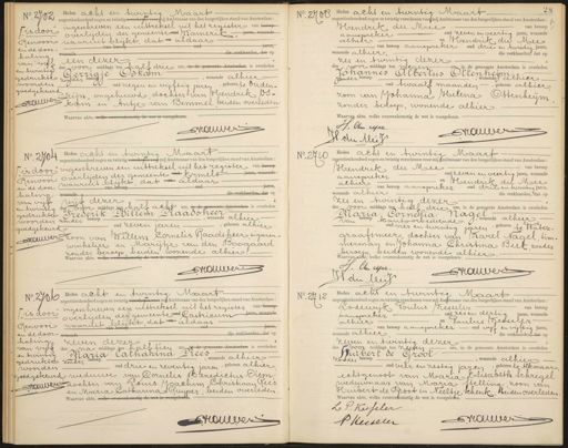 No. 2702 /is door Renvooi en de door- haling van vijf en twintigst gedrukte. woorden goedgekeurd rouwer Heden acht en twintig Maart negentienhonderd negen en twintig verschenen veer hij Ambtenaar van den burgerlijken stand van Amsterdam: ingeschreven een uittreksel uit het register van beroep jaren, wonende overlijden der gemeente on Kamerik waaruit blijkt, dat ee aldaar vo van beroep die verklaarden, dat op wonende een dezer des voor middags ten half drie ure, in de Amsterdam is overleden. Gerrigie Bham, wonende alhier zonder beroep 00 oud negen en vijftig jaren, geboren te Ouden- =zijn, ongehuwd, dochter van Hendrik Os- Mam en Antje van Bemmel beiden overleden N Waarvan akte, wel rouwer Heden acht en twintig Maart negentienhonderd negen en twintig verschenen voor mij Ambtenaar van den burgerlijken stand van Amsterdam: Hendrik du Mee van beroep aanspreker oud zeven en veertig jaren, wonende alhier en Hendrik du Mee van beroep aanspreker oud drie en twintig jaren wonende alhier. die verklaarden, dat op zes en twintig dezer des voor middags ten negen ure in de gemeente Amsterdam is overleden Johannes Alberlus Ollenheijm zonder beroep wonende alhier — oud twaalf maanden, geboren alhier zoon van Johanna Helena Ottenheijm zonder beroep, wonende alhier. Waarvan akte, welke overeenkomstig de wet is voorgelezen. S. Am Eee Crauver H: dur MeeJr No. 2704 „is door Renvooi en de door- haling. van vijf en twintig gedrukte woorden goedgekeurd ADOd Heden acht en twintig Maart negentienhonderd negen en twintig verscheyen veor mij Ambtenaar van den burgerlijken stand van Amsterdam: =mgeschreven een uittreksel uit het register van beroep =overliden der gemeente en Ermelo jaren wonende waaruit blijkt dat e aldaar iaaan — van heroep de verklaarden dat of wonende vijf dezer degen vooor mide te half acht ue in det Frederik zillem Raadsheer eree te overleden wonende alhier zonder beret oud zeven jaren, geboren alhier