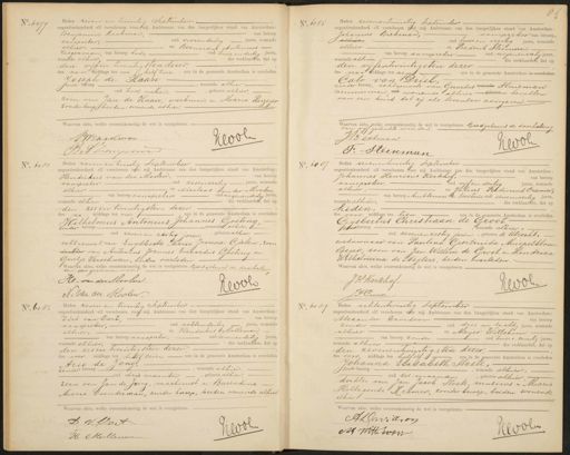 No. 6079 Heden zeven en twintig September. negentienhonderd elf verschenen voor mij Ambtenaar van den burgerlijken stand van Amsterdam: van beroep Benjamin Raakman, — aanspreker, oud vierendertig Jaren, wonende alhier. ep Bernardus Antonius- leegerman van beroep tode oud twee en dertig jaren die verklaarden, dat op wonende alhier den vijf en twintigsten dezer, des na middags ten half twee ure in de gemeente Amsterdam is overleden, Joseph de Haan , wonende alhier Jzonder bbroep oud twee weken, geboren alhier, zoon van Jan de Haan, werkman en Maria Reiziger zonder beroep beiden wonende alhier. Waarvan akte, welke overeenkomstig de wet is voorgelezen. PWraakman Gloole J A Zeegune No. 6085 Heden zevenentwintig september- negentienhonderd elf verschenen or mij Ambtenaar van den burgerlijken stand van Amsterdam: Johannes Beekman, aanpreker van beroep, alhier, oud twee en veertig jaren, wonende alhier en Frederik Steenman van beroep aanspreker oud negenenzestig jaren wonende alhier. die verklaarden, dat op den vijfentwintigsten dezer des na biddags ten negen ure in de gemeente Amsterdam is over Cato van Driel, zonder beroep, echtgenoote van Gerardus wonende Huisman timmmerman oud wonende alhier geduren is bevallen van een kind dat zij als levenloos aangeven. Waarvan akte, welke overeenkomstig de wet is voorgelezen. Goedgekeurd de doorhalin- van vif gedrukte woorden J B eekman hevon F: Steenman No. 6081 Heden zeven en twintig September negentienhonderd elf verschenen voor mij Ambtenaar van den burgerlijken stand van Amsterdam, Hendrikus van der Moolen, van beroep aanspreker oud zesenzestig jaren, wonende alhier en Nicolaas van der Moolen„ van beroep aanspreker oud negenendertig Jaren wonende alhier die verklaarden, dat op den zes en twintigsten dezer des na middags ten vier, ure in de gemeente Amsterdam is overleden Wilhelmus Antonius Johannes Goeting, zonder beroep wonende alhier, oud zeven en zestig jaren, geboren alhier, echtgenoot van Engelberta Maria Joanna Gielen, zoon dochter van Antonius Joannes Everardus Goeting en Grietje Verschuren, beiden overleden Waarvan akte, welke overeenkomstig de wet is voorgelezen. Goedgekeurd de doorhaling van een geschreven woord. H. van der Moolen Revolo A. van der Aoolen. No. 6087 Heden zevenentwintig September negentienhonderd elf verschenen Voor mij Ambtenaar yan den burgerlijken stand van Amsterdam Johannes Henricus Kerkhof, van beroep aanspreker, oud vijfendertig jaren, wonende alhier en Julius Ferdinand Cramer, van beroep Ambtenaar ter Secretarie oud eenenveertig jaren, wonende alhier, die verklaarden, dat op heden. des voor middags ten tien ure in de gemeente Amsterdam is overleden Gijsberus Christaan de Groot vondeberoep, wonende alhier, oud zevenenzestig jaren, geboren te Utrecht, weduwnaar van Paulina Geertruida Mispelblom Beger zoon van Jan Willem de Groot en Hendrica Wilhelmina de Negtere, beiden overleden. Waarvan akte, welke overeenkomstig de wet is voorgelezen. J H Kerkhof. LWvol J.F. Cramer No. 6083 Heden zeven en twintig September negentienhonderd elf verschenen voor mij Ambtenaar van den burgerlijken stand van Amsterdam: Dirk van Oort, van beroep aanspreker, oud achtendertig jaren, wonende alhier, en Hendrikus Molleman, van beroep aanspreker, oud zevenendertig Jaren wonende alhier, die verklaarden, dat op den zes en twintigsten dezer- des voor middags ten half zeven ure in de gemeente Amsterdam is overleden Arie de Jong,— wonende alhier zonder beroep— oud drie maanden, geboren alhier zoon van Jan de Jong, machinist en Barendina Maria Coenderman, zonder beroep, beiden wonende alhier. Waarvan akte, welke overeenkomstig de wet is voorgelezen. D V. Voet Jeobl H Moillenns No. 6089 Heden achtentwintig September negentienhonderd elf verschenen voor mij Ambtenaar van den burgerlijken stand van Amsterdam Alezander Davidson van beroep zonder oud drie en tachtig jaren, wonende alhier en Meijer Witteboon van beroep zonder oud twee en zeventig jaren wonende alhier die verklaarden, dat op den zevenentwintigsten dezer, des voor middags ten half elf ure in de gemeente Amsterdam is overleden Johanna Elisabeth Stoete, zonder beroep, wonende alhier, oud zes maanden, geboren alhier dochter van Jan Jacob Stoete, musicus en Maria Hillegonda Kramer, zonder beroep, beiden wonende alhier Waarvan akte, welke overeenkomstig de wet is voorgelezen. ADav: d on M Willezoon 9