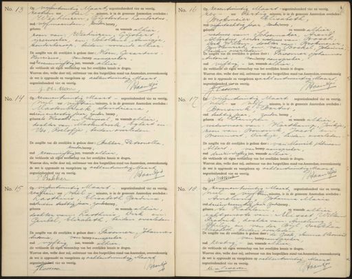 op vyfentwintig Maart negentienhonderd vier en veertig zestien uur mil- minuten, is in de gemeente Amsterdam overleden: Weehuizen, Gysbertus Lambertus oud vijfmaanden, zonder beroep en wonende alhier, geboren zoon van: Weehuizen, Gijsbert ijzerwerker, en: Scholtens, Annigje, zonderberoep, beiden wonende alhier. De aangifte van dit overlijden is gedaan door: Koen, Gerardus Henricus, van beroep aanspreker, oud zevenenvijftig jaar, wonende alhier die verklaarde uit eigen wetenschap van het overlijden kennis te dragen. Waarvan akte, welke door mij, ambtenaar van den burgerlijken stand van Amsterdam, overeenkomstig de wet is opgemaakt en voorgelezen op achtentwintig Maart negentienhonderd vier en veertig Haant G„ PC. Aous No. 16 Op zesentwintig Maart - negentienhonderd vier en veertig zes uur dertig minuten, is in de gemeente Amsterdam overleden: Brokmeier, Elisabeth oud vijfentachtig jaar, zonder beroep geboren en wonende alhier weduwe van Schoemaker, Arend Albertus eerder weduwe van: Bosch, Derk Willem, dochter van: Brokmeier Jan Heinrich en van Bockel, Johanina beiden overleden De aangifte van dit overlijden is gedaan door: Fasamer fphannes Antonie, van beroep aanspreker, oud vijftig jaar, wonende alhier die verklaarde uit eigen wetenschap van het overlijden kennis te dragen. Waarvan akte, welke door mij, ambtenaar van den burgerlijken stand van Amsterdam, overeenkoms de wet is opgemaakt en voorgelezen op acht en twintig Maart, negentienhonderd vier en veertig. Haantz „ J Cassmer No. 14 Op zevenentwintig Maart negentienhonderd vier en veertig Cnul uur vijftien ninuten, is in de gemeente Amsterdam overleden: Mastenbroek, Sandriena oud een en zestig jaar, zonder beroep geboren te Hassell in Iverijssel, en wonende alhier dochter van: Mastenbroek Egbert en. Vos, Roelofje, beiden overleden De aangifte van dit overlijden is gedaan door: Bakber, Petronella, zonder beroep oud zesenvijftig jaar, wonende alhier die verklaarde uit eigen wetenschap van het overlijden kennis te dragen. Waarvan akte, welke door mij, ambtenaar van den burgerlijken stand van Amsterdam, overeenkomstig de wet is opgemaakt en voorgelezen op acht entwintig Maart Baarde negentienhonderd vier en veertig J Bakker op vijfentwintig Maart negentienhonderd vier en veertig nul- uur vijf minuten, is in de gemeente Amsterdam overleden: Bonsink Bartus oud tachtig jaar, zonder beroep geboren te Kampen, en wonende alhier, weduwnaar van: Kartkamp, Joukje, zoon van:: Bonsink, Jacob en: Brommert, Dirkje, beiden overleden De aangifte van dit overlijden is gedaan door: van Manrik, Adriaan Albert, van deroep aanspreker, oud drie eivvijftig jaar, wonende alhier die verklaarde uit eigen wetenschap van het overlijden kennis te dragen. Waarvan akte, welke door mij, ambtenaar van den burgerlijken stand van Amsterdam, overeenkomstig de wet is opgemaakt en voorgelezen op achtentwintig Maart Haantr negentienhonderd vier en veertig. De We 10. 12 op vijfentwintig Maart negentienhonderd vier en veertig, zestien uur wul - minuten, is in de gemeente Amsterdam overleden: Lasthuis, Elisabeth Gerdina, oud drie en tachtig jaar, zonder deroep, EN en wonende alhier, geboren dochter van: Lasthuis Dirk en Geubel, Elizabeth, beiden overleden De aangifte van dit overlijden is gedaan door: Jassmer, Jolanner Antonie, van beroep aanspreker, oud vijftig jaar, wonende alhier, die verklaarde uit eigen wetenschap van het overlijden kennis te dragen. Waarvan akte, welke door mij, ambtenaar van den burgerlijken stand van Amsterdam, overeenkomstig de wet is opgemaakt en voorgelezen op achtentwintig Maart negentienhonderd vier en veertig aans Hostmer Op zevenentwintig Maart negentienhonderd vier en veertig, nil uur vijf tienvintien, is in de gemeente Amsterdam overleden: Amelng, Johanna Maria oud drie en zeventig Jaar, zonder deroep, geboren te Hatilem, en wonende alhier echtgenoote van: Misset Willen Fredrik, dochter van: Amelung Chilip en: van der Bil, Dorothea Elisabeth, beiden overleden. De aangifte van dit overlijden is gedaan door: de Goede, Samelkem van beroep aanspreker oud zestig jaar, wonende alhier, die verklaarde uit eigen wetenschap van het overlijden kennis te dragen. Waarvan akte, welke door mij, ambtenaar van den burgerlijken stand van Amsterdam, overeen de wet is opgemaakt en voorgelezen op achtentwintig Maart negentienhonderd vier en veertig Baant k hoeden