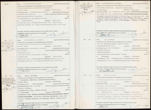 No. 34 Heden vierentwintig oktober negentienhonderd achtenzestig verscheen voor mij, ambtenaar van de burgerlijke stand van Amsterdam: Ostendorf, Henricus, begrafenisondernemer, oud zestig jaar, wonende te Amsterdam, die verklaarde, dat op drieentwintig oktober negentienhonderd achtenzestig te eenentwintig uur,tien minuten, in de gemeente Amsterdam is overleden Martienus, Frederika Hendrika, oud zevenenzeventig jaar,zonder beroep, geboren te 's-Gravenhage, wonende te Amsterdam, echtgenote van : Proper, Jan,dochter van : Martienus, Frederik Hendrik en : Meijer, Hendrekien,beiden overleden. De aangever verklaarde uit eigen wetenschap van het overlijden kennis te dragen. Lninker Waarvan akte, welke overeenkomstig de wet is voorgelezen. Wttarss No. 3 No. 3 Doorhaling van dertig woorden goedgekeurd. Iams J. Durinker Heden zevenentwintig november negentienhonderd achtenzestig verscheen voor mij, ambtenaar van de burgerlijke stand van Amsterdam: Ostendorf, Henricus, begrafenisondernemer, oud zestig jaar, wonende te Amsterdam, die verklaarde, ditop als levenloos aan te geven negentienhonderd achtenzestig het kind, dat op vijfentwintig minuter in degemeente Amooerdam is overleden: november negentienhonderd achtenzestig, te achttien uur ovd vijftien minuten is geboren uit van Dongen, Adriana, zonder beroep, echtgenote van: Sarton, Cornelis Johanne Seoeren te Maria, confectieleider, beidenwonende te wonende te Amster- dam. De aangever verklaarde uit eigen wotenschap van het overlijden konnis te dragen- Waarvan akte, welke overeenkomstig de wet is voorgelezen. L.ninker JOsteris No. 35 Goedgekeurd de loorhaling van zes letters en H. Ouinl een leesteken. So Heden negenentwintig oktober negentienhonderd achtenzestig verscheen voor mij, ambtenaar van de burgerlijke stand van Amsterdam: Ostendorf, Henricus, begrafenisondernemer, oud zestig jaar, wonende te Amsterdam, die verklaarde, dat op zesentwintig oktober negentienhonderd achtenzestig te elf uur,nul, minuten, in de gemeente Amsterdam is overleden: Groot, Martinus, oud zevenenzeventig jaar,zonder beroep, geboren te Enkhuizen, wonende te Amsterdam, echtgenoot van : Knesing, Maria Sephig- Sophia,zoon van : Groot,Nicolaas en : de Jong, Johanna,beiden overleden. De aangever verklaarde uit eigen wetenschap van het overlijden kennis te dragen. orvan chten vake geteerkonddig de wel ie voorgeleen ALuinker NVoendo