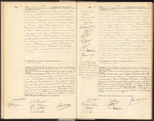 No. 13 Heden vier Mei negentienhonderd zes en veerti verschenen voor mij, Ambtenaar van den Burgerlijken Stand van Amsterdam, ten einde een huwelijk aan te gaan: Dekker Johannes Franciscus Nico- laas, hoofd eener school, geboren in Brielle, wonende in Rotterdam oud veertig jaar, van echt gescheiden echtgenoot van: Goedendorp, Anna Maria, meerderjarige zoon van Dekker, Klaas, overleden, en: van Hal, Francina Cornelia, zonder beroep, wonende in Rotterdam, en. Verhagen; Gerritje, onderwijzers geboren en wonende alhier, oud een en dertig jaar, meerderjarige dochter van: Verhagen, Jan Marinus overleden, en: Pennink, Jansje Cornelia, zonder beroep, wonende alhier De afkondiging tot dit huwelijk is onverhinderd geschied, alhier en in Rotterdam Bruldegom en bruid verklaarden mij, elkander aan te nemen tot echtgenooten en getrouwelijk alle plichten te zullen vervullen, welke door de wet aan den huwelijken staat zijn verbonden. Daarop heb ik, in naam der wet verklaard, dat zij door het huwelijk aan elkander zijn verbonden. dds getuigen waren tegenwoordg Pennink, Jansje Cor nelia, moeder der bruid oud een en zestig jaar: Verhagen, Johanna Cornelia Zuster der bruid, oudmegen en twintig jaar, beiden zonder beroep en wonende alhier, van Hal„ Francina Cornelia, moeder des bruidegoms oud zeven en zestig jaar, en Dekker Emma Suzanna Anthonia, zusterdes bruidegoms ord drie en dertig jaar, beiden zonder beroep en wonende in arstam No. 14 wonende alhier. Renvooi goed. gekeurd HcKoup Jldeljaay Totinan. Jmn 1 vehij S f J t