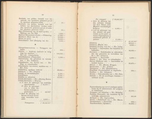 30 Restitutie van gelden, betaald voor het | gebruik van openbaren gemeente-grond | en openbaar gemeente-water Ee 8. Scheepstimmerwerven. — Teruggave van LL Scholen, — Aankoop, aanbouw en inrig- ting van openbare —. 9d Zie ook: Armenscholen. Schoolkommissie (Plaatselijke) . AA Schoonhouden van gebouwen en vertrek- ken. — Zie: Gebouwen. Schoonhouden van havens enz. — Zie: Diep- en schoonhouden. Schoonhouden van straten, markten enz. — Zie: Puin. Schouwburg, speeljaar 1866/67 Schouwen. — Zie: Schuiten, Schrijf en bureaubehoeften . Schrijfisonen, „iT, Schuiten en schouwen . . Schuld (Stedelijke). — Zie: Aflossing, Renten. Schuld (Stedelijke). — Delging: a. 1°. door de opbrengst van stedelijke eigendommen . f 20,000.— 2’. door de opbrengst van in 1865 ver- kochte stedelijke ei- gendommen . . 447.215 b. door de aflossing van het aan de bank van lee- ning verstrekte voor- schol ee Transportere , . f 23,347.215 200.— 100,000.— 1,100.— 31 Per transport . f 23,341.215 c. door de aflossing van den achtsten termijn der door Natura Artis Magistra verschuldigde koopsom . A d. voor de opbrengst van den afstand van graf- ruimte op de ooster- en wester-begraafplaats,in uitsluitend gebruik af- gestaan . . . + 17,82. Schulter. - + + Schutterij (Muziek der) . . Schutterij (Loting voor de). — Zie: Loting. Secretarie. — Jaarwedden der beambten en bedienden . GEN BUITNSA, Secretarie. — Onderhouden en schoonhou- den der gebouwen en vertrekken van de —. Zie: Gebouwen. Secretaris. — Jaarwedde Sr Slooten. — Zie: Diep- en schoonhouden. Sluizen (Bedienen van). — Jaarwedden en verdere kosten . OEE Sluizen. — Zie: Havens, Bruggen. Speelwerken. — Zie: Klokken. Spuitgasten. — Zie: Brandmeesters. Staatsblad, Provinciaalblad en dagbladen . Stadhuis. — Zie: Gebouwen. Straten. — Schoonhouden van —. Zie: Puin. Subsidie. — Zie de instellingen waaraan — verleend wordt. Tw. Tegemoetkoming aan eervol ontslagen ambte- naren bij de administratie der accijnsen onspelisingen 0 47,167.215 82,500.— 4,000.— 56,000.— 5,000. — 30,475.— Restitutie van gelden, betaald voor het hebben van partikuliere werken onder den openbaren gemeente-grond of onder het openbare gemeentc-water . : Teruggave van belasting. — Zie: Belasting. Rijn (Verbetering van de vaart op den). — Bijdrage aan het Rijk ein Toelagen (Personele), aan beambten bij de stedelijke administratie ; Rijnvaart (Kommissie voor de). — Uitkeering. Toelagen. — Zie: Leprozenhuis. Rijnhaven (Huur van de) Torens. — Onderhoud van —. Zie: Huizen. Riolen en goten ee Torenwachters. — Jaarwedde Rotterdammer sloot (Demping van de}: Tusschenscholen (Openbare) .