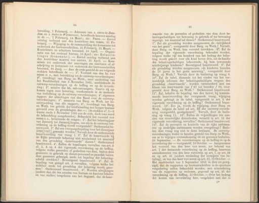 34 bereiding, 7 Februarij. — Adressen van A. PRINS te Zaan- dam en J. PRINS te Wormerveer, betreffende hunnen aanslag in de —, 7 Februarij, 14 Maart; zie: Pans, — Eervol ontslag verleend aan den kontrôleur DES TOMBE, 21 Fe. bruarij. — Wijziging in de zamenstelling der kommissie tot onderzoek der bezwaarschriften, 21 Februari, 21 Maart. — Kontròleurs en schatters benoemd, 18 April. — Organi- satie van het centraal bureau, 18 April; zie: Belastin- tingen (Gemeente-). — Eervol ontslag verleend aan den kontròleur MARTINÍ VAN GEFFEN, 25 April. — Kom- missie tot onderzoek der aanvragen om restitutie of af- schrijving en kommissie tot onderzoek der bezwaarschriften benoemd, 20 Junij. — Aan de orde gesteld de zes volgende stukken betreffende de —: 1°. Voorstel van den hr. VAN BOSSE C. s., met betrekking tot de ontwerp-verordeningen ; 2°. voordragt van Burg. en Weth, naar aanleiding van het Raadsbesluit van 8 November 1865, aanbiedende de ontwerp-verordeningen op de heffing en op de invorde- ring; 38°. missive der hh. sub-ontvangers, waarin zij op- komen tegen eene bewering, voorkomende in de memorie van toelichting op de ontwerp-verordeningen; 45°, algemeen rapport der afdeelingen van den Raad over de ontwerp- verordeningen; 5°, memorie van Burg. en Weth. ter be- antwoording van dit rapport; 6°, voordragt van Burg. en Weth. ten geleide der briefwisseling met hooger bestuur gevoerd over de grondslagen der —; (de stukken n°. 15 waren reeds 8 November 1865 aan de orde, doch toen werd de behandeling aangehouden). Behandeld het voorstel vAn BOSSE c.s, bevattende de vragen: 1°, Za] het belastingjaar van Januarij tot Januarij loopen, zoo als in de ontwerp-ver- ordening op de heffing wordt voorgesteld ? Ontkennend be- antwoord. 2". Zal een overgangsbepaling voor het dienstjaar 1866[1867] gemaakt worden ? Vervalt door de ontkennende beantwoording van vraag 1. 3°. Zal de huurwaarde bij de Rijks personele belasting niet uitsluitend tot maatstaf van den grondslag huurwaarde” dienen ? Ontkennend beantwoord. 4°, Zullen de bepalingen vervallen van art, 9 al. 1, 8 en 4 der vigerende verordening op de heffing, volgens welke pereeelen of gedeelten van dien, buiten deze gemeente in gebruik en dienst-personeel en paarden buiten deze gemeente gebezigd, mede tot bepaling der belasting- schuld strekken ? Bevestigend beantwoord. 5°, Zal de bepaling van gezegd art. 2 vervallen, volgens welke het mobilair mede tot grondslag der belasting wordt geno- men? Ontkennend beantwoord. 6°, Worden afwijkingen (andere dan die ten aanzien van bureau- en kantoor:lokalen en van stallen) toegelaten van het beginsel, dat de huur- 35 waarde van de perceelen of gedeelten van pee lastingschuldigen ter bewoning in gebruik ve NE ingerigt, tot maatstaf zal dienen? oere ee 7% Zal als grondslag bed ve pe Ki van het gezin”, voorgesteld door Burg. j Vole arg. en Weth. hun voorstel intrekken. 8°. et vigerende verordening gee Br, volgens welke vijf ten honderd van het bedrag er | as ing y elk kind boven drie, tot de familie ting wordt gekort voor ì Se] des EN en MN a i jarige kinderen? Bevestig t pi je worden aangenomen „de eee ew de 18 jaren in het gezin aanwezig”, voorges B Burg. en Weth.? Vervalt door de beslissing op ey 10°, Zal de tabel, dienende tot het vinden id 1e ir moedelijk inkomen der meege] ee ie grondslag -huurwaarde”, worden ee erd a En klasse van huurwaarde van f 67 tot bene LD DE esteld door Burg. en Weth.? Ontkennend bean ea ie Zal, behalve de bepaling van den factor, bij DELE mende er ee id eej vorden gebragt in de tabel, vastg ' Se Ne op de heffing? ee Ma woord. 12°. Zoo ja, wordt de wijziging, door ee Weth. volgens de B nl pe EN Es i "ges gekeurd ? 4 Ee Zullen de vrijstellingen ten aan- Ike : rmeld in art. 15 der zien van vrouwelijke dienstboden, verme ee vigerende verordening, vervallen ? Ontkennen an U . 14. Zal de perceptie en kontrôle van de tog B ren op stedelijke ambtenaren worden overge js Mo ten deze vraag nog niet te doen DL, je ID verordeningen weder in handen gesteld van ur en om ze te wijzigen overeenkomstig de nu ee 20 September. — De verordeningen op de EE invordering der — vastgesteld, 10 October. _ ee ee het voorstel van den heer VAN BOSSE, tot be ie ge art. 7 der bestaande verordening op de hefling, ee ee amendementen van den heer PIJNAPPEL op art. 7, op ar U en op art. 41 (andere verdeeling der ve vo] DE taling), en van den heer VAN BOSSE op U 27, Ve eu Het raadsbesluit van 3 September 1856 in Dn zi DE ij zigd, dat de rapporten op bezwaarschriften in r pe vergadering zullen behandeld worden, De) ui ns ing van de rapporten op reclames, gegront D 5 ee verordening op de heffing, 11 October. — Over IN FET der kosten van invordering hier, vergeleken met da 3%