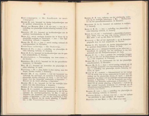 82 Mest-compagnie. — Zie: ie: Landbouw- en mest- MEULEM (D. vAN), benoemd t ; ; ot derden hul ij de openbare armenscholen, 20 Junij. bij MEULEN VAN MAR WIJK ( W ed J H V —— — û 5 5 . VAN DER). Aa n de ontheffin va eli g - g an plaats ke direkte belasting verleend, 14 Ja MEuLEvELT (W. G.), benoemd ij a) tot 1 \ : openbare tusschenscholen, 30 meike ae ee MEuRs (G.), eervol ontslage i )s JC gen kommies der 2e kl ij plaatselijke accijnsen en belastingen. — Aan Ed i moetkoming verleend, 1 Augustus. Mees Dr. W.J). — Aan — ol 2 ee 28 9 ee ie Middelbaar onderwijs. — Zie: Onderwijs. MiJNssEN (J. P.). — Aan — ontheffì t ij i rekte belasting verleend, 17 ei, et Mirze (E. D. J.), benoemd tot hoofd ij bare armenscholen, 11 Oo pi oen Modderbakken V igi . — Vervaardiging van twee ni 24 October. ie beelen 6 ci MODDERMAN (Mr, A. E.J), b Ï P i sore Nt enoemd tot lid der gezondheids- Morr (H. J.), benoemd tot òleur ‚ 5 : te Dee Ie a kontrôleur der plaatselijke di- M 0 1 Ss £g — —_— i g 5 ij mag sl ch S DN bêne ri ti ar den ! 4 ee : | ) 0 € e mg, na Singel, bereden worden, 7 Februarij. MorstEr (Mr. J. A), raadslid. — Lid der kommissie van onderzoek der aanvragen om restitutie of afschrijving van plaatselijke direkte belasting, 20 Junij. — Lid der 9 missie voor het burgerlijk armbestuur, 4 September al 83 Moorse (F. H. VAN), ontheven van het scheikundig onder- zoek bij de stedelijke belastingen, 1 Mei. — Herbenoemd tot lid der gezondheidskommissie, 19 December. MoransArD (G. A. J.), benoemd tot makelaar in mobilair, 17 Januari. Mortu (J. M. D.). — Aan — ontheffing van plaatselijke di- rekte belasting verleend, 17 Januari. Mou (L.J. L. DE). — Aan kolonel —, plaatselijken komman- dant, weder voor een jaar vrije woning verleend in het Huis onder ’t zeil op den Dam, 24 October. Mouterij. — Het erf der afgebrande — op de Kattenbur- gergracht door de stad aangekocht, 25 October. Mouwer Jr. (P.), benoemd tot derden hulponderwijzer aan de openbare burgerschool, 1e klasse, 20 Junij. Ne tot de vierde afdeeling, 4 ee OLSTER (Mr. J. A.), benoemd tot li ij missie voor den schouwburg, 1 AE speelen ge MurDER (D.) c.s. — Afwijzend beschikt op het adres van —, betreffende de oprigting van een schietbaan in een tuin grenzende aan het Schapenburgerpad, 20 Junij. MomBEr (J. D.), nachtwacht, gepensioneerd, 1 Augustus Murper (F. C.). — Aan —, pachter der voormalige bruggen n°, 285 en 286 over de Oude Schans, een schadevergoeding van f 300 toegekend, 21 Februari]. Momma (B. J.), raadslid. — Gekommitteerd om den kontrô- leurs der personele belasting behulpzaam te zijn bij het opmaken der beschrijvingsbiljetten, 30 Mei. ès Lil * voorzitter der kommissie van voorbereiding van Pebiete werken, 4 September. — Lid van den brandraad, 4 Sep- tember. — Behoort tot de vierde afdeeling, 4 ‘Sept ber. — Zie: Voorstellen van leden, en MurDer (Mr. L. v. 8), herbenoemd tot lid der plaatselijke schoolkommissie, 19 December. Mücer (Mr. B. J.). — Aan — eervol ontslag verleend als lid der stedelijke kommissie voor den schouwburg, 25 April. — Aan — ontheffing van plaatselijke direkte belasting ver- leend, 25 April. MuLtER (P. N.), raadslid. — Gekommitteerd tot het toezigt over de loting voor en het onderzoek der bewijzen van vrij- stelling van de schutterlijke dienst, 18 April. — Lid der kommissie van beheer over de stedelijke rentegevende eigen- dommen, 4 September. — Lid der 'kommissie van voorbe- bereiding van financiële onderwerpen, 4 September. — Be- hoort tot de tweede afdeeling, 4 September. — Lid der op zijn voorstel benoemde kommissie tot onderzoek van de schouwburg-aangelegenheden, 19 December. — Zie: Voor- stellen van leden. MuNsTER (D. vn). — Aan — ontheffing van plaatselijke di- rekte belasting verleend, 17 Januarij. Museum (Rijks). — Gevaar voor het — van het opslaan van petroleum in zijne nabijheid, 29 Augustus. Museum van DER Hoop, — Zie: Hoop (VAN DER). 6%