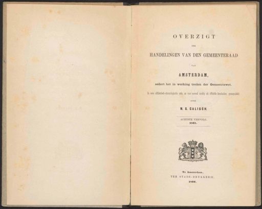 Stadsarchief Amsterdam, archieftoegang 31375, Archief van de Gemeente Amsterdam: Gemeenteblad, inventarisnummer 9, Indexen, Overzicht der handelingen van de gemeenteraad over de jaren 1851-1890, 1865