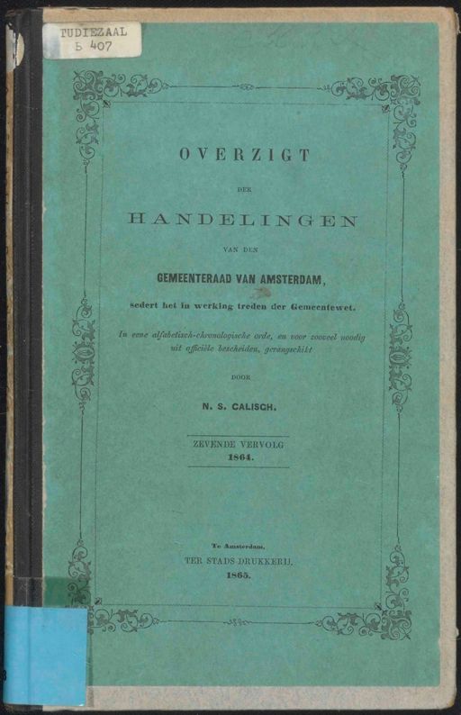 Stadsarchief Amsterdam, archieftoegang 31375, Archief van de Gemeente Amsterdam: Gemeenteblad, inventarisnummer 8, Indexen, Overzicht der handelingen van de gemeenteraad over de jaren 1851-1890, 1864