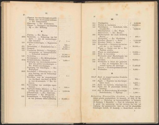 32 Uitgaven van verordeningen en publi- n | w kin, 0 dead nommer. | — Zie: Gemeenteblad. | 7 | : . mm | 211 | Wachtgelden. . . | f 6,982.62 ee ENT Î HE ar Ee 3 5 an # fm * 2 mn EN 8 ie EN ä Nn Vaarten. — Zie: Havens. Weduwenfonds der stads drukkerij. Bonen 480.— Weekgelden. — Zie: Werklieden. ea | Weeshuis (Burger-). — Rente . 1,155.625 E | Weeshuis (Wale-). — Rente . .]« 233.10 895. — | Weesperbelt. — Inrigting van het ter- 1,000. — | rein der — tot veemarkt . . 98,000.— 98000 — | Wegen. — Opzigt over de —. Zie: ie | Publieke werken. Zand- en jaagpad tusschen Breukelen an Ouderkerk Gi ee 894.— Zegels. — Registers van den burger- lijken stand . tiu on a 3,450. — 2,700.— Belasting (Plaatselijke direkte). — Staat van on- inbare posten goedgekeurd, 13 Januarij, 27 Julij, 21 De- 3 ‚en ie ge on | 241 Waller en kaaimuren . . 190,000.— bi Zi ig van belasting | 147 | Wachthuizen. — Onderhoud, licht, * Vacatieloon. — Uitkeering van het halve — aan de wetenschappe- lijke keurders ae erg Wegen en wandelplaatsen . . 10,600.— 10.900.— Werk- en leerscholen. . ai 2,000. — 102 243.46 | Werkenden stand (Maatschappij. van ij den) —. Zie: Ambachtsschool. 1400.— | Werts IE 63,694.— de 2d Werklieden in dienst der gemeente. — Dag- en weekgelden der — en | 109 | Zegels van registers, rekeningen enz. 200.— 81,950.— BIUUs ’ 4 | cember. — Beslissing op bezwaarschriften, 14 Januarij, —. Zie: belasting. brandstoffen. 43 25. 8,062.50 Vi nine perlaringen — Registreren verdere kosten der fabricage . 11,498.40 Werven. — Zie:Scheepstimmerwerven. Wethouders 8,000. — z. 500.— | 234 | Zegels van de plaatselijke direkte : belasting . ee 1.550,04 | 219b| Zeil- en Roeivereeniging (Koninklijke A Nederlandsche). — Bijdrage . 1,000.— 29 Januarij, 7 December. — Over de verhooging der —, in geval van aanneming van het ontwerp van wet tot wijziging der gemeentewet, voor zoo veel de plaatselijke belastingen betreft, 29 Januarij. — Kontròleurs, sub-ont- Wandelplaatsen. — Zie: Wegen. ‘ Waterwerken. — Zie: Havens. er —. En Varenslieden. — Examineren van —. Veemarkt. eN Veenhuizen (Kolonie). — Vestigings, vervangings- en transportkosten. — Uitbestede kinderen . Verlichting . eee je ON Verlofgangers. — Zie: Militiepligtigen. Vermakelijkheden (Openbare) ' Verpleging van veroordeelde overtre- ders van politie-verordeningen. — Zie: Politie-verordeningen. Verpleging van behoeftigen. — Zie: behoeftigen. Verschotten. — Uitkeering van — we- gens keuring, aan de wetenschap- pelijke keurders. weder [ot Vertrekken voor de vergaderingen van den Raad, van Burg. en Weth. en voor de secretarie. — Zie: Ge- bouwen. Vervreemding van stedelijke eigen- dommen gd Ve Vogelwijks-landen (Buiten-). — Ver- goeding aan den pachter der —. Volksonderwijs, — Zie: Onderwijs. Vrachtloonen. — Zie: Briefporten. Vreemdelingen. — Verpleging van — en van personen elders armlastig.