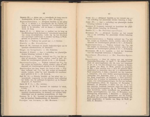 96 SiEmons (H.). — Adres van — betreffende de brug over de Lindengracht, 13 en 27 April. — Zie: Bruggen. Sigarenfabrieken. — Afwijzend beschikt op het adres van F. A. BINGER c, s., verzoekende dat de vrijdom van accijns op voorwerpen, dienende tot voortbrengend ge- bruik in de fabrieken, ook tot hunne — worden uitge- breid, 23 Junij. Sinck (G.). — Verkoop van grond aan —, 5 October. Sintels. — Zie: Steenkolen. SKENE (G. W.), benoemd tot derden hulponderwijzer aan de openbare tusschenscholen, 21 December. Slagt- en bergplaats. — Zie: SCHRÖTER. SuuyTers (J. EyKEN). — Aan — ontheffing van plaatselijke direkte belasting verleend, 6 Juli. Smederijen. — Vrijdom verleend van 19/9 van den ac- cijns op steenkolen, sintels, cinders, cokes en turf, die- nende tot voortbrengend gebruik in de —, 29 Januari. Smeersmelteriijjen. — Vriijdom verleend van 1/9 van den accijns op steenkolen, sintels, cinders, cokes en turf, dienende tot voortbrengend gebruik in de, 29 Januarij. Smelteriijjen van ijzer, koper, tin, lood en zink. — Vrij- dom verleend van 19/99 van den accijns op steenkolen, sintels, cinders, cokes en turf, dienende tot voortbren- gend gebruik in de —, 29 Januari. 97 SNoEK (J.). — Afwijzend beschikt op het verzoek van — om ontheffing van plaatselijke direkte belasting, 6 Juli. SoBBe (W.). — Aan — ontheffing van plaatselijke direkte belasting verleend, 6 Julij. SoETEMAN (P. Lammens), benoemd tot kontrôleur der plaat- selijke direkte belasting, 24 Februarij. 1 SOETENS (C.) — Zie: Paarden-spoorbaan. SpPANGELER (T.). — Afwijzend beschikt- op het verzoek van — om ontheffing van plaatselijke direkte belasting, 6 Julij. Spiijkerfabrieken. — Vrijdom verleend van 19/4 van den acejns op steenkolen, sintels, cinders, cokes en turf, dienende tot voortbrengend gebruik in de —, 29 Januarij. SPuITGERBER (Mr. J. J.), raadslid. — Lid der kommissie voor het burgerlijk ambestuur, 7 September. Spoorbaan (Paarden-). — Zie: Paarden-Spoor- baan, Spoorwegen. — Over de rigting van den spoorweg Amsterdam-Nieuwediep, 13 April. — De stukken betref- fende de spoorwegplannen der hh. PAUL VAN VLISSINGEN en mr. W. K. VAN DER BREGGEN (voor PORTMAN te Parijs), in handen van Burg. en Weth. gesteld tot preadvies, 25 Mei. — Een ontwerp voor —, dvor de gemeente Haar- lemmermeer en omstreken, door mr. J. P. AMERSFCORDT den Raad aangeboden, 6 Julij. — Geschrift van den ingenieur IL GOSSCHALK, over eene direkte spoorwegverbinding van Amsterdam met Rotterdam, door J. 3. VAN DER MAADEN den Raad aangeboden, 24 Augustus. — Over spoorweg- stations hier te maken tot aansluiting bij de staatsspoor- wegen, over verbindingsspoorwegen, en over een centraal- spoorwegstation alhier, 24 Augustus, 17 November, 7 December, 21 December. — Adres van mr. W. K. VAN DER BREGGEN, houdende bezwaren tegen het maken van een centraal-spoorwegstation bij de Nieuwebrug in het open havenfront, voorts betrefiende een gordelbaan en andere spoorwegplannen; ter visie, 17 November; voor kennisgeving aangenomen, 7 December. — Afschrift van een adres van mr. J. P. AMERSFOORDT aan den Koning, betreffende den ontworpen Haarlemmermeer-spoorweg, den Raad aangeboden; in handen van Burg. en Weth. ge- steld, 21 December. ’ 7 SmmoNs (P. J.). — Adres van —, pachter van de brug op den Buitensingel bij de Kattensloot, verzoekende wegneming van eenige moeijelijkheden, welke hij bij het doorlaten van vaartuigen ondervindt; in handen van Burg. en Weth. gesteld tot preadvies, 7 December. ST Pz. (A.). — Gunstig beschikt op het adres van —, verzoekende vergunning tot het plaatsen eener schutting ter helfte van de gedempte Looijersloot op de Passeer- dergracht, 21 September. Speldenfabrieken. — Vrijdom verleend van 19/4 van den accijns op steenkolen, sintels, cinders, cokes en turf, dienende tot voortbrengend gebruik in de —, 29 Januari. Sn (H. F. J.). — Zie: POUWELS. SaTauysen (P. H. F.), benoemd tot makelaar in tabak, 6 Julij. SuTT JR. (P.), benoemd tot derden hulponderwijzer aan de openbare tusschenscholen, 14 Januarij; tot tweeden hulp- onderwijzer aan de openbare armenscholen, 27 Julij. SNDERs (D. J. H.), benoemd tot’ derden hulponderwijzer aan de openbare tusschenscholen, 21 December. Snoeijen van boomen. — Zie: Boomen.