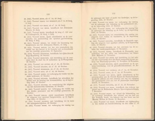 112 16. (345). Voorstel JÄGER, als n°. 14, 22 Junij. 23. (352). Voorstel BEELOO, tot het niet verminderen der wedde van den leeraar in de fransche taal- en letterkunde aan het stedelijk gymnasium, 21 September. den derden praeceptor aan het stedelijk gymnasium, 27 October. 113 de opbrengst der huur of pacht van landerijen, op de be- grooting 1865, 28 October. 37. (366). Voorstel VAN BOSSE, tot verhooging der raming van de opbrengst der belasting op het gedisteleerd enz., op de begrooting 1865, 28 October. 50. (879). Voorstel BrOMs, tot uitstel der behandeling van de voordragt betreffende den afstand van een deel van het Leidsche bosch, ten behoeve van den bouw van het Museum Willem de Eerste, 21 December. 8 17. (846). Voorstel TEDING VAN BERKHOUT, als n°. 14, 28 Junij, 6 Juli. 24. (353). Voorstel HEEMSKERK, betreffende het rijden door de Enge-Kapelsteeg, 26 October. 34. (363). Voorstel BEELOO, zijnde amendement betreffende de uitgaven voor openbare burgerscholen, op de begroo- ting 1865, 27 October. 38. (367). Voorstel BrOMS, tot verhooging der raming van de opbrengst der belasting op de boter, op de begrooting 1865, 28 October. 51. (380). Voorstel vAN BOSSE, betreffende een tijdsbepaling in het besluit tot bereidverklaring om den onder n°. 50 18. (347). Voorstel VAN BOSSE, als n°. 14, 23 Junij. 25. (354). Voorstel HESHUYSEN, met betrekking tot de over- name door de stad van de aschschuur op de Weesperbelt, 26 October. 35. (364). Voorstel RIJNDERS, met betrekking tot de rente der anticipatie-biljetten, 28 October. 89. (368). Voorstel FEITH, tot vermindering der raming van uitgaven voor wallen en kaaimuren, op de begrooting 1865, 28 October. 19. (348). Voorstel VAN BOSSE, betreffende het Athenaeum Illustre, 23 Junij. 26. (355). Voorstel VAN LENNEP, als n°. 25, 26 October. 36. (365). Voorstel BROMS, tot verhooging der raming van 40. (369). Voorstel PIJNAPPEL, betreffende de financiéle rege- ling der uitgaven voor openbare scholen, op de begrooting 1865, 28 October. 20. (349). Voorstel BROMS, betreffende de brug n°. 137 over de Lindengracht, 23 Junij, 6 Julij. 21. (856). Voorstel GÜLCHER, als n°. 25, 26 October. 41. (370). Voorstel GÜüLCHER, tot het niet-lezen van de no- tulen der raadsvergaderingen, 17 November. 21. (350). Voorstel BroMs, zijnde amendement op de voor- waarden van aanbesteding der openbare gasverlichting, 23 Junij, 6 Julij. 28. (357). Voorstel HEEMSKERK, als n°. 25, 26 October. 49. (371). Voorstel MOMMA, betreffende de Plantaadje, naar aanleiding van het adres van bestuurderen van Natura Artis Magistra, 17 November. 22. (351). Voorstel BEELOO, tot uitstel der benoeming van hoogleeraren aan het Athenaeum Illustre, 27 Julij. 29. (358). Voorstel KEER, als n°. 25, 26 October. 43. (372). Voorstel VAN BOSSE, met betrekking tot het nale- ven der voorwaarden door den Raad vastgesteld bij den ver- koop van Plantaadje-gronden, 17 November, 28 November. 80. (359). Voorstel momma, tot verhooging der wedde van den stads archivaris, 27 October. 44. (378). Voorstel BüCHNER, zijnde amendement op de ont- werp-verordening voor de gezondheidskommissie, 23 No- vember. 81. (360). Voorstel BüCANER, betreffende het uittrekken der kosten voor de keuring van levensmiddelen, op de begroo- ting 1865, 27 October. 45. (374). Voorstel VAN CAPPELLE, als n°. 44, 23 November. 82. (361). Voorstel BÜCHNER, tot vermindering der uitgaven van het Laboratorium Chemicum, 27 October. 46. (375). Voorstel Asser, als n°. 44, 23 November. 33. (362). Voorstel KOENEN, tot verhooging der wedde van 47. (376). Voorstel VAN BOSSE, zijnde amendement op het ontwerp-adres aan de Tweede Kamer der Staten-Generaal, houdende adhesie aan het ontwerp van wet tot wijziging der gemeentewet voor zoo veel de plaatselijke belastingen betreft, 28 November. 48. (377). Voorstel PIJNAPPEL, als n°, 47, 23 November. 49. (378). Voorstel vAn Bosse, betreffende den verkoop van grond aan de Hollandsche IJzeren Spoorwegmaatschappij, 7 December.