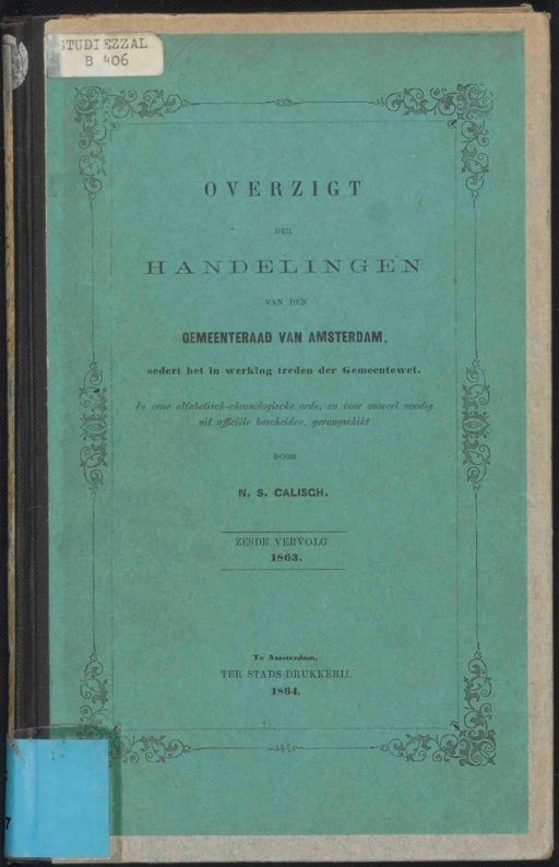 Stadsarchief Amsterdam, archieftoegang 31375, Archief van de Gemeente Amsterdam: Gemeenteblad, inventarisnummer 7, Indexen, Overzicht der handelingen van de gemeenteraad over de jaren 1851-1890, 1863