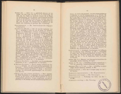 Stadsarchief Amsterdam, archieftoegang 31375, Archief van de Gemeente Amsterdam: Gemeenteblad, inventarisnummer 7, Indexen, Overzicht der handelingen van de gemeenteraad over de jaren 1851-1890, 1863