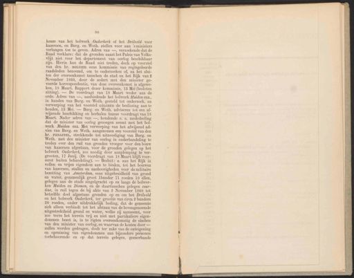 80 keuze van het bolwerk Ouderkerk of het Drilveld voor kazernen, en Burg. en Weth. stellen voor aan 's ministers verlangen toe te geven. Adres van —, verzoekende dat de Raad verklare: dat de gronden naast het Paleis van Volks- vlijt niet voor het departement van oorlog beschikbaar zijn. Hierin kan de Raad niet treden, doch op voorstel van den hr. MOLSTER eene kommissie van Tegtsgeleerde raadsleden benoemd, om te onderzoeken of, na het slui- ten der overeenkomst tusschen de stad en het Rijk van 2 November 1860, door de sedert met den minister ge- voerde korrespondentie, van deze overeenkomst is afgewe- ken, 18 Maart. Rapport dezer kommissie, 18 Mei (besloten zitting). — De voordragt van 18 Maart weder aan de orde. Adres van —, aanbiedende het bolwerk Muiden enz, in handen van Burg. en Weth. gesteld tot onderzoek, na verwerping van het voorstel GüLCHER de beslissing aan te houden, 13 Mei. — Burg. en Weth. adviseren tot een af- wijzende beschikking en herhalen hunne voordragt van 18 Maart. Nader adres van —, houdende o. a. mededeeling dat de minister van oorlog genoegen neemt met het bol- werk Muiden enz. Met verwerping van het afwijzend ad- vies van Burg. en Weth. aangenomen een voorstel van den hr. PIJNAPPEL, strekkende tot uitnoodiging van Burg. en Weth. met den minister van oorlog in onderhandeling te treden over den ruil van gronden vroeger voor den bouw van kazernen afgestaan, voor de gronden gelegen op het bolwerk Ouderkerk, zoo noodig door aanplemping te ver- grooten, 17 Junij. (De voordragt van 18 Maart blijft voor- eerst buiten behandeling). — Besluit: a. aan het’ Rijk in vollen en vrijen eigendom aan te bieden, tot het bouwen van kazernen, stallen en aanhoorigheden voor de militaire bezetting van Amsterdam, eene uitgebreidheid van grond en water, gezamenlijk groot lbunder 71 roeden 10 ellen, gelegen aan de stads singelgracht op en langs de bolwer- ken Muiden en Diemen, en de daartusschen gelegen cour- tine, in ruil tegen de bij akte van 2 November 1860 tot hetzelfde doel afgestane gronden op en om het Drilveld en het bolwerk Ouderkerk, ter grootte van circa 2 bunders 30 roeden, onder uitdrukkelijk beding, dat de gemeente zich alleen verbindt tot het afstaan van de bovengenoemde uitgestrektheid grond en water, welke zij aanneemt, voor zoo verre het terrein vrij en niet met partikuliere eigen- dommen bezet is, in te rigten overeenkomstig de eischen van den minister van oorlog, en waarvan de kosten door — zullen worden gedragen, doch ter zake van de onteigening en opruiming van eigendommen aan bijzondere personen toebehoorende en op dat terrein gelegen, geenerhande