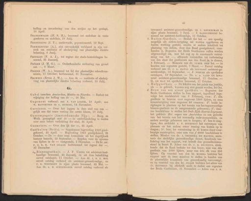 14 hefing en invordering 18 April. van den accijns op het geslagt, FREDERKING (J. P.), nachtwacht, gepensioneerd, 12 Sept. FrITZLEN (F. A. J.), tot regent der stads-bestedelingen be- noemd, 25 Januarij. FRrÖBER (J. M. G.). — Onderhandsche verhuring van grond aan —, 9 Maart. FroGEr (W. A.), benoemd tot lid der plaatselijke schoolkom- missie, 17 October; herbenoemd, 21 November. FRrOWEIN (Erven J. W.). — Aan de — restitutie of afschrij- ving van plaatselijke direkte belasting verleend, 18 Julij. G&G. Gabel tusschen Amsterdam, Muiden en Naarden. — Besluit tot wijziging der heffing van de —, 16 Mei, Gagement verleend: aan FT. VAN LOOPIK, 18 April; aan W. MATTHYSEN en A. HUBEEK, 14 November, Garnizoen. — Over het leggen in deze stad van een — gelijk aan dat eener vesting der eerste klasse, 18 Julij. Gascompagnie (Amsterdamsche Piijp-). — Burg, en Weth. gemagtigd met de -— in onderhandeling te treden a, Binnengasthuis. — J. P. UDINK tot adsistent-heel- kundige benoemd, 25 Januarij, en uit deze betrekking eervol ontslagen, 17 October. — Aan dr. 7. G. Z. MOL eervol ontslag verleend als assistent-geneeskundige, en F. R. WESTHOFF in zijne plaats benoemd, 23 Mei. — Aan dr. A. H. SCHOEMAKER eervol ontslag verleend als 45 inwonend assistent-geneesknndige, en 7, HEUKELMAN in zijne plaats benoemd, 7 Junij. — J. BARENDRECHT be: noemd tot assistent-heelkundige, 17 October, Buiten-Gasthuis. — Besluit dat het — zoo spoedig mogelijk als zieken-inrigting zal worden opgeheven en buiten werking gesteld, zoodra er andere lokaliteit tot plaatsing van zieken, door den Raad goedgekeurd, voor- handen is. Regenten der Beide Gasthuizen zullen worden uitgenoodigd om, met het oog op de aanstaande ontrui- ming van het —, afdoende voorstellen tot verbetering van den staat der gasthuizen aan den Raad in te dienen, 8 Februarij. — Memorie van dr. LUBER over het — in handen van regenten gesteld, 7 Maart. — Eervol ontslag verleend aan dr, J. A. HANLO als inwonend assistent-ge- neeskundige, 12 September. — J. POSTER als apotheker ontslagen, 12 September. — Dr. A. A. LAND tot inwo- nend assistent-geneeskundige benoemd, 17 October, — G. DE MAN tot apotheker benoemd, 17 October. Hulpgasthuis. — De lokalen van het paleis van justitie, als — in gebruik, kunnen nog niet gemist worden, 24 Oct, Bouw van een nieuw gasthuis, — Regenten der Beide Gasthuizen stellen in hun rapport, ingediend inge- volge het raadsbesluit van 8 Februarij, voor: 1°, één gasthuis te bouwen voor ongeveer 1000 lijders, en eene kraaminrigting voor ongeveer 60 vrouwen; 2°, beide in- rigtingen te plaatsen op het terrein van het tegenwoordige binnen-gasthuis en de aangrenzende gebouwen; 3°, daar- toe beschikbaar te stellen het Oude Zijds Heeren-Logement, het pakhuis Het wapen van Amsterdam en een gedeelte van het terrein van het voormalig oude-mannenhuis, en andere noodige gebouwen aan te koopen; 4°. hen te mag- tigen, den architekt A. N. GODEFROY het ontwerpen van plannen en het maken eener raming van kosten op te dragen; 5°. hun, ter voorziening in de kosten dezer voor- loopige maatregelen, eene som van f 6000 beschikbaar te stellen, Missive van dr. TI. TEIXEIRA DE MATTOS, secre- taris der stedelijke geneeskundige dienst, houdende toe- lichting van het rapport, wat betreft den gezondheidstoe- stand in buurt B. Adres van dr. C. E, HEYNSIUS, strek- kende dat de Raad besluite tot den bouw, niet van één gasthuis van 1000 lijders, maar van drie elk voor 350 lijders. Op voorstel van den hr. MoMa besloten het rapport met de twee missives te stellen in handen van de plaatselijke kommissie van geneeskundig toevoorzigt; en op voorstel van den hr. JoLLEs besloten het adres van dr. HEYNSIUS bij afschrift mede te deelen aan regenten der Beide Gasthuizen, 21 November, — Adres van J. H. ze ein FRANKEMOLEN (H. S. M.), benoemd tot makelaar in vaste goederen eu mobilair, 18 Julij. FRrEMERSTURP (A.), niet ontvankelijk verklaard in zijn ver- zoek om restitutie of afschrijving van plaatselijke direkte belasting, 6 Junij. over eene betere verlichting der stad, 25 April. Gasmeters. — Over den ijk der —, 25 April. Gasthuizen (Beide). — Supplement-begrooting 1859 goed- gekeurd, 25 April. — Begrooting 1861 goedgekeurd, 25 October. — De — door eene kommissie uit het dagelijksch bestuur bezocht, 12 September. — Regelen voor de opname van lijders in de — vastgesteld, 7 December. — De hr. mr. F, G. R. H. VAN LILAAR herbenoemd tot regent der — 27 December.