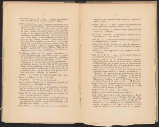 ii 7 De See siege eg 56 HoLrzMANN (Mr. J. J.). — Aan — restitutie of afschrijving van plaatselijke direkte belasting verleend, 14 Maart. Hoofdonderwijzers, op de openbare armenscholen en op de openbare tusschenscholen. — Hunne bezoldiging enz. vast- gesteld als volgt: a. f 1300 ’s jaars, zomer- en winter-, dag- en avondschool; f 1200 ’s jaars, zomer- en winter- dagschool en alleen ’s wiuters avondschool; f 1100 ’s jaars, alleen dag- school; %. de teruggave van de drie eerste tegenwoordige grondslagen der personele belasting, voor zoo verre zij een vrije woning hebben, of eene vergoeding in verhouding tot die hun voor huishuur verstrekt; c. eene toelage ten be- hoeve van elken kweekeling van ten minste f 25 en gemid- deld de som van f 100 niet te boven gaande, 6 Junij, Het bedrag der wedden, volgens de bovenvermelde verdeeling gewijzigd en bepaald op f 1400, f 1300 en f 1200, 12 Sep- tember. — Benoemd tot — der openbare armenscholen H. L. HEIDEBRINK en J. B. GEEL, 7 December, I oofdonderwiijzers op de openbare burgerscholen. — Hunne bezoldiging enz. vastgesteld als volgt: a. scholen der eerste klasse, f 1400 ’s jaars; scholen der tweede klasse, f 1500 ’sjaars; scholen der derde klasse, f 1600 ’s jaars, benevens, in alle drie klassen, 5 pCt. der schoolgelden; %. de teruggave van de drie eerste tegenwoordige grondslagen der personele belasting, voor zoo verre zij een vrije woning hebben, of eene vergoeding in verhouding tot die hun voor huishuur verstrekt; c. eene toelage van ten minste f 25 en gemiddeld de som van f 100 niet te boven gaande, ten be- hoeve van elken kweekeling, 12 September. Hooger onderwijs. — Zie: Onderwijs. Hoogesluis. — Zie: Brug over den Amstel. Hoogezand en Sappemeer. — Verordening regelende het beurtveer op —, vastgesteld, 25 April. & ES Ee 517 afschrijving van plaatselijke direkte belaeting, afwijzend be- schikt, 6 Junij. Hortus Botanicus. — Over de nieuwe rigting der brug bij den —, 7 December. Houtrijk en Polanen. — Overdragt in erfpacht van een stuk grond te —. Zie: STRUBE. Hovy (Mr. A. J.), benoemd tot curator der openbare tusschen - en burgerscholen, 17 October. HuBEEK (A.), stads baggerman. — Aan — gagement verleend, 14 November, Huer (Dr. G. D. L.). — Aan — eervol ontslag verleend als assistent-stads-geneesheer, 20 Junij. Huisonderwijs. — Uit de ontwerp-verordening regelende het openbaar lager onderwijs vervalt het artikel, waarbij den hoofdonderwijzers der openbare armen- en tusschenscholen verboden wordt bijzonder huis- of schoolonderwijs te geven, behalve aan hunne eigene kinderen, 6 Junij. Huiszittenhuis. — Het — door eene kommissie uit het dagelijksch bestuur bezocht, 25 Januarij, 12 September. — Vaststelling der tarieven voor de winterbedeeling 1860 en voor de zomerbedeeling 1861, 17 October. -— De begroo- ting van het — voor 1861 goedgekeurd ‚ 25 October. — Hulde aan de regenten van het —, 25 October. — De hr. P. KEER herbenoemd tot regent van het —, 27 December. Hulpbanken. — Hoogstens veertien — zullen worden op- gerigt, 28 Maart. — De inrigting en werking der — niet door den Raad te regelen, 28 Maart, Hulpbureaux van politie. — Zie: Politie. Hulphospitaal. — Zie: Paleis voor Justitie. Hulponderwijzers op de stads armenscholen. — Eervol ontslag verleend aan J. H. J. DIJKHOFT, 8 Februarij. — Be- noemd: H, KROESE, 16 Mei. — Eervol ontslag verleend aan: J. B. GEEL, H. KROESE en H. BARENDS, 27 Dec. — Benoemd: H, VAN VOORTHUISEN, D. B. ADRIAN en C. LION CACHET, tot eerste —; F, G. MELLINK en W. F. VAN DER VLIET, tot tweede —; J. H, EGGELTE PZ, K. J. C. KUNNE, Eija ed ij Hoorrs (J. A.), benoemd tot makelaar in koffij en thee, 4 Sept. Hoogleeraren in de natuur- en geneeskundige wetenschap- pen aan het Athenaeum Illustre. — Brief van de —, over de noodige hervorming van het onderwijs in die vakken, 4 Sept. Horton (Mej. F.). — Aan — restitutie of afschrijving van plaatselijke direkte belasting verleend, 6 Junij. Hovack (Dr. E. F.), benoemd tot curator der openbare ar- menscholen, 24 October; heeft deze betrekking niet aange- nomen, 81 October. HooRrN (Q. W. van), benoemd tot curator der openbare tus- schen- en burgerscholen, 31 October. HoorN (Mr, Tu. van), hoofdkommies ter stedelijke secretarie, algemeene zaken. — Hulde aan de bemoeijingen van — bij de ontbinding der stedelijke turfwerkers-vereenigingen en de likwidatie harer fondsen, 18 April. HorN (Wed). — Op het adres van de —, om restitutie of