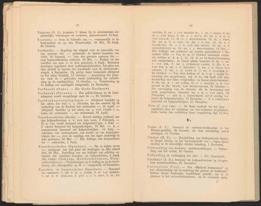99 TRESLING (N. 1; kommies Ie klasse bij de administratie der DAVIDS, 6. mr. J, VAN EEGHEN PZ, 7. Mr. P, ELIAS, 8. mr plaatselijke belastingen en accijnsen, gepensioneerd, 12 Sept. M, C. VAN HALL, 9, Mr. A. J, HOVY, 10 MT. FP, G.H Trottoirs, — Over de behoefte aan —, voornamelijk in de VAN LILAAR, ll. dr. D. +, MUNTENDAM, 12, dr. d> PENN, Kalverstraat en op den Nieuwendijk, 30 Mei, 20 Junij, 13, MI. H, W. G. Ras, 14. jhr, 7. P. six, 15, dr, 7, A SER) STAMKART, 16. A. J. H. VAN DER TOORN, 17. mr. F. T, WESTERWOUDT en 18. mr, J. L. WOLTERBEEK, 17 Oct, — Het kollegie van curatoren zal worden geïnstalleerd 1 No- vember 1860. — Van de op 17 October benoemde curato- ren hebben n°, 3, 4, 7, 11, 12, 15 en 16 hunne benoemino niet aangenomen; in hunne plaats benoemd de hh. 1, MT. J. VAN EIK, 2. MI. J. EVERWIJN LANGE, 8. jhr, T, H. VAN EYS, 4. mr. J. G. KRUIMEL, 5. Mr, J. P, PLOOS VAN AMSTEL, 6. MT, L. H. KUHN en 7. mr, E. SLAGHEK jr 24 October, — Van deze hebben n°. 8, 5 en 7 hunne be: noeming niet aangenomen, ook de hr, sx heeft zich zijne benoeming niet laten welgevallen; in hunne plaats benoemd : de hh. et] J. DE LANGE, dr. D. J. WILLET, Q, W. VAN 5 HOORN en Jhr. FRANG. VAN BEVERVOORDE, 31 October. — Turfmarkt (Oude). — Zie: Oude- Turfmarkt. ler vervanging van dr. WILLET, die de benoemine niet Turfmarkt (Nieuwe). — Het politie-bureau in de Leid- heeft aangenomen, benoemd mr. P. M. G. VAN HEES, 21 schepoort wordt overgebragt naar de —, 95 October, November. — Aan H. L, HEIDEBRINK eervol ontslag ver- leend als hulponderwijzer, 27 December, — J. D. UKKERMAN benoemd tot hulponderwijzer, 27 December. Turfmarkt. — Regeling der uitgaaf voor de jaarwedde van den opziener der —, gedurende de laatste maanden van 1859, 25 Januarij. — Aan den gewezen opziener der — cene tegemoetkoming verleend, 16 Mei, — Besluit tot het instellen van eene — in deze gemeente, 6 Junij. Bezwaren daartegen ingediend door turfmagazijnhouders; het adres van deze gesteld in handen der kommissie voor de strafverorde- ningen, 4 September. Op advies dezer kommissie afwijzend op het adres beschikt, 17 October, — Aanwijzing der plaat- sen waar de — gehouden wordt (uitbreiding der verorde- ning op de marktpolitie), 17 October. — Verordening op de heffing van marktgeld vastgesteld, 14 November. Turfwerkersvereenigingen. — Afwijzend beschikt op het adres der wed. C. A. PIETERS, om een aandeel bij de verdeeling van de fondsen der ontbonden —, 18 April. — Tuuk (C. VAN DER). — De Raad oordeelt dat het door — Afwijzend beschikt op het adres van A. VAN VUREN C. $, ingediend plan tot oprigting van een weduwen- en pensioen- leden der ontbonden —, om onderstand, 25 April. fonds buiten den werkkring dezer vergadering tiet! 14 Noy Tusschenscholen (Stads). — Eervol ontslag verleend aan den hulponderwijzer F. P. VAN DER Loos, 8 Februarij. — U. H: c. VAN soErsT benoemd tot hulponderw'jzer, 8 Febr. — * ord en een pe ee er UDINK (J. P.), benoemd tot assistent-heelkundige in het MEKELHONP Denon DIN gars U Binnen-gasthuis, 25 Januari; uit deze betrekking : Adressen van bestuurderen, van hoofd- en van hulponder- otslaee? 17 October arj; mit deze betrekking eervol wijzers der —, over de regeling van het lager onderwijs in je ; Oner deze gemeente, 23 Mei. — Het kollegie van bestuurderen UHLMAN (M, R.). — Beschikking van Gedeputeerde Staten, der — ontbonden, 7 Junij. in hooger beroep, op het bezwaarschrift van —, tegen zijnen Tusschenscholen (Openbare). — Op te rigten zeven aanslag in de plaatselijke direkte belasting, 7 December, —; maximum van het getal der leerlingen op elke school 300, 23 Mei. Instelling van een kollegie van achttien eu- ratoren der openbare tusschen- en burgerscholen, 6 Junij. Uitbreiding en verfraaijing der stad, — Zie: SARPHATI (Zie verder: Onderwijs, Hoofdonderwöijzers, Hulp- Uaseaaas (J, D.}, benoemd 10 hal vonderwijzer at onderwijzers). — Verordeningen op de heffing en op de invor- bare tusschensehsien 97 De ee erwijzer op de open- dering van schoolgelden op de — vastgesteld, 12 December. ! » SeemDer, A vier sgr, Se Uitbesteding van kinderen ‚ stadsbestedelingen, — Uitbrei- ding van het stelsel, 25 October. Ls wai U ER) (Vrije), — Het „Medisch leesmuseum” en iet 7Genootschap ordering der genee De ET ‚eg genees- en heelkunde” NO Re Ekeren Ïeschi baar gesteld, om ze te plaatsen 1n het universiteitsgebouw, bij de eventuele oprig:- Tusschen- en burgerscholen (Openbare). — Benoemd tot curatoren: l. MI. T, M. C. ASSER, 2. M. VAN BERKEL, 3, mr, N. W, BERLAGE, 4. prof. J. €. G. BOOT, 5. dr, TH. 1”