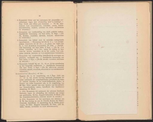 36 ‚ Kommissie belast met het ontwerpen der plaatselijke ver- ordeningen tegen wier overtreding straf is bedreigd. — Deze wordt niet telken jare benoemd. — De hh. MEs- SCHERT VAN VOLLENHOVEN, voorzitter, ASSER, SCHIM- MELPENNINCK, FABIUS, LINTELO DE GEER, HEEMSKERK en MOLSTER.) ‚ Kommissie van voorbereiding van stads publieke werken. Jaarlijksche benoeming van hare leden, 21 Sept. — (De hh, MOMMA, voorzitter, BEUKER, BOELEN, HESHUYSEN en INSINGER.) ‚ Kommissie van beheer over de stedelijke rentegevende eigendommen. — Benoeming van den hr. D, A. VAN HEEMS- KERCK VEECKENS tot lid der —,in plaats van wijlen den hr. P. VAN MARSELIS HARTSINCK, 20 Julij. — Jaarlijk- sche benoeming van hare leden, 6 Sept. — (De hr. vaN BOSsE, voorzitter, tot 5 Oet, sedert dit tijdstip de heer CORVER HOOFT, voorzitter, en de hh. ASSER, VAN LIM- BURG STIRUM, BEUKER en VAN HEEMSKERCK VEECKENS). ‚Kommissié van voorbereiding betreffende de aanvragen om pensioen, wachtgeld enz. — Jaarlijksche benoeming van hare leden, 6 Sept. — (De hh. BROMS, voorzitter, GÜLCHER en MÜLLER.) _— ‚Kommissie bedoeld bij art. 11, 12 en 13 der verordening op het burgerlijk armbestuur. — Jaarlijksche benoeming van hare leden, 6 Sept. — (De hh. BROUWER ANCHER, voorzitter, BROMS, INSINGER, MOLSTER en VAN HEEMSKERCK VEECKENS,) ! í : EE OE Kommissiën (Raads-), ad hoe: i Rapport der in de vergadering van 9 Sept. 1858 (zie n°, 11 in het dwoeede vervolg) benoemde kommissie tot nader onderzoek der aangelegenheden betreffende de wegen en vaarten tusschen de zes noord-hollandsche steden, in handen van welke kommissie ook, in de vergadering van 29 Dec. 1858, gesteld was ecne missive van den minister van binnenlandsche zaken, betreffende den haarlemmer straatweg, 30 Maart. 1, (70). Kommissie tot onderzoek der adressen houdende bezwaren tegen de afschaffing der restitutie van accijns aan godshuizen, 26 Jan. Rapport behandeld, 30 Maart. (De hh, SCHIMMELPENNINCK, CORVER HOOFT en JOLLES.) 2, (TI). Kommissie tot het ontwerpen van adressen aan 7. M, den koning en aan de Tweede Kamer der Staten- Generaal, betreffende de aansluiting bij de Zuider-spoor- wegen, 16 Febr. Rapport behandeld, 23 Febr. (De hh. BERG, BROMS, RIJNDERS en CATS BUSSEMAKER).
