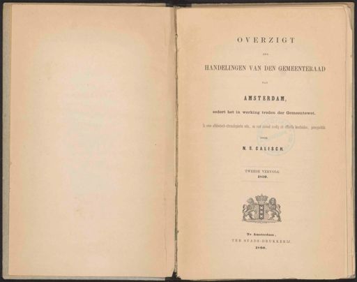 Stadsarchief Amsterdam, archieftoegang 31375, Archief van de Gemeente Amsterdam: Gemeenteblad, inventarisnummer 3, Indexen, Overzicht der handelingen van de gemeenteraad over de jaren 1851-1890, 1859