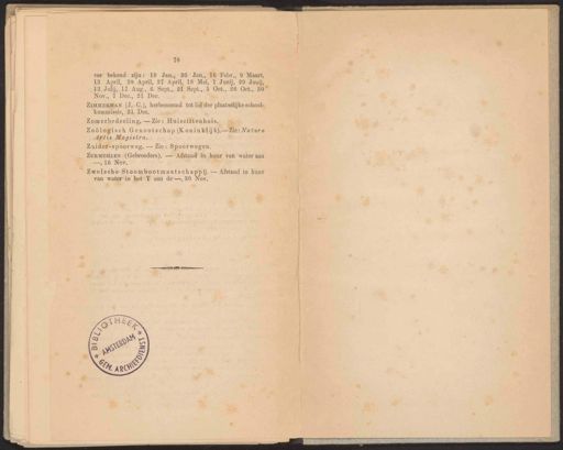 18 ver bekend zijn: 19 Jan, 26 Jan, 16 Febr, 9 Maart, 13 April, 20 April, 27 April, 18 Mei, 1 Junij, 29 Juuij, 13 Julij, 17 Aug.,-6 Sept, 21 Sept, 5 Oet, 26 Oct: 80” Nov, 7 Dec, 21 Dec. Zuider-spoorweg. — Zie: Spoorwegen. ZURMUHLEN (Gebroeders). — Afstand in huur van water aan —, 16 Nov, ZIMMERMAN (J, C.), herbenoemd tot lid der plaatselijke school- kommissie, 21 Dec, Zwolsche Stoombootmaatschappij. — Afstand in huur van water in het TY aan de —, 80 Nov, Zomerbedeelins, — Zie: Huiszittenhuis. Zoölogisch Genootschap (Koninklijk). — Zie: Natura Artis Magistra,