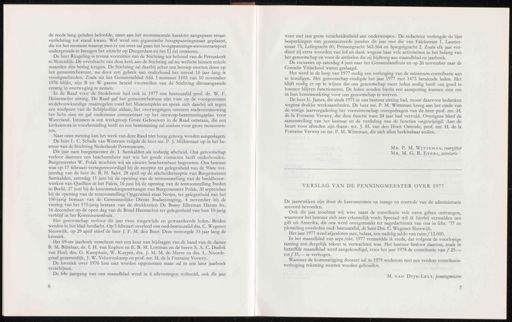 de reeds lang geleden beloofde , meer aan het monumentale karakter aangepaste straat- verlichting tot stand kwam . Wel werd een gigantische hoogspanningsmast geplaatst , die tot het moment waarop men er toe over zal gaan het hoogspannings-stroomtransport ondergronds te brengen het uitzicht op Durgerdam en het IJ zal ontsieren . De heer Ringeling is tevens voorzitter van de Stichting tot behoud van de Petruskerk te Sloterdijk . De overdracht van deze kerk aan de Stichting zal nu wellicht binnen enkele maanden zijn beslag krijgen . De Stichting zal daarbij zeker een beroep moeten doen op het gemeentebestuur , nu door een gebrek aan onderhoud het verval 10 jaar lang is voortgeschreden . Zoals uit het Gemeenteblad Afd . I nummer 1103 van 10 november 1976 blijkt , zijn B en W gaarne bereid voorstellen van de Stichting dienaangaande ernstig in overweging te nemen . In de Raad voor de Stedebouw had ook in 1977 ons bestuurslid prof . dr . W . F . Heinemeijer zitting . De Raad gaf het gemeentebestuur zijn visie op de voorgenomen stedebouwkundige maatregelen rond het Museumplein en sprak zich daarbij uit tegen een eindpunt van de Schiphollijn aldaar , liet overwegingen omtrent stadsvernieuwing het licht zien en gaf ondermeer commentaar op het ontwerp-bestemmingsplan voor Waterland . Intussen is een werkgroep Grote Gebouwen in de Raad ontstaan , die een kerkennota in voorbereiding heeft en een bestemming zal zoeken voor grote monumen- ten . Naar onze mening kan het werk van deze Raad niet hoog genoeg worden aangeslagen . De heer L . C . Schade van Westrum volgde de heer mr . P . J . Mijksenaar op in het be- stuur van de Stichting Nederlands Persmuseum . Dit jaar nam burgemeester dr . I . Samkalden als zodanig afscheid . Ons genootschap verloor daarmee een beschermheer met wie het goede contacten heeft onderhouden . Burgemeester W . Polak mochten wij als nieuwe beschermheer begroeten . Ons bestuur was op 17 februari vertegenwoordigd bij de receptie ter gelegenheid van de 90ste ver- jaardag van de heer dr . B . H . Sajet , 28 april op de afscheidsreceptie van Burgemeester Samkalden , zaterdag 11 juni bij de opening van de tentoonstelling van de beeldhouw- werken van Quellien in het Paleis , 16 juni bij de opening van de tentoonstelling Steden in Beeld , 27 juni bij de kennismakingsontvangst van Burgemeester Polak , 30 september bij de opening van de tentoonstelling Opgeruimd staat Netjes , ter gelegenheid van het 100-jarig bestaan van de Gemeentelijke Dienst Stadsreiniging , 4 november bij de viering van het 175-jarig bestaan van de drukkerijen De Bussy Ellerman Harms bv , 16 december op de open dag van de Bond Heemschut ter gelegenheid van hun 10-jarig verblijf in het Korenmetershuis . Het genootschap verloor dit jaar twee toegewijde en gewaardeerde leden . Beiden werden in het blad herdacht . Op 5 februari overleed ons oud-bestuurslid drs . C . Wegener Sleeswijk , op 29 april stierf de heer J . F . M . den Boer . Deze verzorgde 33 jaar lang de kroniek . Het 69-ste jaarboek verscheen met een keur van bijdragen van de hand van de dames B . M . Bijtdaar , dr . I . H . van Eeghen en E . B . M . Lottman en de heren S . A . C . Dudok van Heel , drs . G . Kamphuis , W . Kuyper , drs . J . M . M . de Meere en drs . L . Noorde- graaf gezamenlijk , J . W . Veluwenkamp en prof . mr . H . de la Fontaine Verwey . De kroniek over 1976 kon niet worden opgenomen maar zal in een later jaarboek verschijnen . De 64e jaargang van ons maandblad werd in 6 afleveringen voltooid , ook dit jaar weer met een grote verscheidenheid aan onderwerpen . De redactrice verlengde de lijst besprekingen van gerestaureerde panden dit jaar met die van Falckstraat 1 , Laurier- straat 75 , Leliegracht 60 , Prinsengracht 562-564 en Spiegelgracht 2 . Zoals elk jaar ver- dient zij extra woorden van lof en dank wegens haar vele activiteiten in het belang van het genootschap en voor de artikelen die zij bijdroeg aan maandblad en jaarboek . De excursies op zaterdag 4 juni naar het Gemeenlandhuis en op 26 november naar de Cornelis Vrijschool waren geslaagd . Het werd in de loop van 1977 nodig een verhoging van de minimum-contributie aan te kondigen . Het genootschap eindigde het jaar 1977 met 1473 betalende leden . Het blijft nodig er op te wijzen dat ons genootschap meer leden nodig heeft om goed te kunnen blijven functioneren . De leden zouden hierin een aansporing kunnen zien om in hun kennissenkring voor ons genootschap te werven . De heer E . James , die sinds 1971 in ons bestuur zitting had , moest daarvoor bedanken wegens drukke werkzaamheden . De heer mr . P . M . Witteman kreeg aan het einde van de vorige jaarvergadering het voorzitterschap overgedragen van de heer prof . mr . H . de la Fontaine Verwey , die deze functie toen 24 jaar had vervuld . Overigens bleef de samenstelling van het bestuur en de verdeling van de functies ongewijzigd . Aan de beurt voor aftreden zijn thans : mr . J . H . van den Hoek Ostende , prof . mr . H . de la Fontaine Verwey en mr . P . M . Witteman , die zich allen herkiesbaar stellen . Mr . P . M . Witteman , voorzitter Mr . M . G . B . Evers , secretaris . VERSLAG VAN DE PENNINGMEESTER OVER 1977 De jaarstukken zijn door de kascommissie na inzage en controle van de administratie accoord bevonden . Ook dit jaar mochten wij weer naast de contributie vele extra giften ontvangen , waarvoor het bestuur zich zeer erkentelijk voelt . Speciaal wil ik hierbij vermelden een gift uit Amerika , die ons werd overgemaakt ter nagedachtenis van ons in febr . ' 77 zo plotseling overleden oud - bestuurslid , de heer Drs . C . Wegener Sleeswijk . Het jaar 1977 werd afgesloten met , helaas , een nadelig saldo van ruim ƒ 12.000 . _ In het maandblad van sept./okt . 1977 vermeldde ik reeds , dat volgens de voorlopige raming een dergelijk tekort te verwachten was . Het bestuur besloot daarom , zoals in hetzelfde maandblad werd aangekondigd , voor het jaar 1978 de contributie van ƒ 25 .— tot / 35 .— te verhogen . Wanneer de k