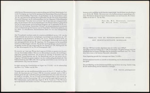 telijk Bureau Monumentenzorg in samenwerking met de Pools-Nederlandse Cul- turele Vereniging ; op 2 mei bij de opening in het Amsterdams Historisch Museum van de tentoonstelling ' Deportatie , de geschiedenis van de Amsterdamse joden ' 40-'45 '; op 9 mei bij de opening door wethouder Van der Vlis in het Amsterdams Historisch Museum van de tentoonstelling over het Algemeen Uitbreidingsplan van Amsterdam : ' Een plan om in te leven '. Op 24 mei nam een vertegenwoordi- ging van het bestuur deel aan de bijeenkomst in de Nieuwe Kerk ter gelegenheid van het 25-jarig bestaan van de Stichting Diogenes ; op 12 september bij de over- dracht door de stichting ' Amsterdam Versierd ' van een gerestaureerd zeventiende eeuws tochtportaal aan het bestuur van de Oude Kerk . Ook bij het jubileum van het offset- en stencilbureau Amstelodamum deden we van onze belangstelling blijken . Het 77e jaarboek verscheen onder de verantwoordelijkheid van mr . J.H . van den Hoek Ostende met een keur van bijdragen van de hand van mejuffrouw dr . LH . van Eeghen en van de heren G . de Flines , drs . S.A.C . Dudok van Heel , H.W . van der Hoeven , Guido Jansen en drs . A.F.J . van Kempen . De kroniek werd ook dit jaar samengesteld door de heer W . Jagerman . De 72e jaargang van het maandblad werd in zes afleveringen voltooid . Aan de lijst van besprekingen van gerestaureer- de panden werden dit jaar toegevoegd die van Amstel 127-129 , Herengracht 241 en 366 , Keizersgracht 127 en 192 en Prinsengracht 1087 . De excursie op 1 juni naar Weesp deed ongeveer 40 leden en gasten over de gren- zen van Amsterdam trekken . Het was een alleraardigste excursie , die werd begun- stigd door prachtig zomerweer . De excursie op zaterdag 14 december naar het Sweelinck Conservatorium aan de Van Baerlestraat was een zeer groot succes . Ongeveer 100 leden en gasten maakten van deze unieke gelegenheid gebruik . Het ledental bedroeg eind 1985 1348 . Het te geringe aantal leden is een voorwerp van aanhoudende zorg voor het bestuur . In dank ontving het Genootschap een legaat van ƒ 10.000 ,— uit de nalatenschap van Mevr . E.J . Volker-van der Star . Tot grote spijt van zijn medebestuursleden moest de heer L . C . Schade van Wes- trum , die nog maar pas op 31 maart 1984 als voorzitter aantrad , reeds in 1985 te kennen geven dat zijn verslechterende gezondheid het hem niet toeliet deze func- tie verder te vervullen . Na een 35-jarig bestuurslidmaatschap is zijn vertrek een groot verlies voor het Genootschap . Op 17 juni werd hij opgevolgd door prof.dr . W.F . Heinemeijer , op diezelfde dag volgde dr . W.H . Vroom mr . P.M . Witteman op in zijn functie van tweede voorzitter . Overigens bleef de samenstelling van ons bestuur en de verdeling van de functies ongewijzigd . Aan de beurt van aftreding is nu ir . H . A.J.M . Weller . Hij wenst niet voor herbenoeming in aanmerking te ko- men . Het bestuur draagt als nieuwe bestuursleden voor mevrouw drs . R.E . Kiste- maker en de heer G . van der Plas . Prof . Dr . W.F . Heinemeijer , voorzitter Mr . M.G.B . Evers , secrecaris VERSLAG VAN DE PENNINGMEESTER OVER HET ZESENTACHTIGSTE BOEKJAAR Het jaar 1985 kon worden afgesloten met een verlies van ƒ 698,67 . Aan giften werd een bedrag van ƒ 7.546,75 ontvangen . De giften bestaan voor een belangrijk deel uit hogere bijdragen dan de minimum contributie van f 35 ,—. Voor deze extra steun is het bestuur bijzonder erkentelijk . Door legatering groeide het vermogen met bijna ƒ 10.000 ,—. De kascommissie keurde na controle en bestudering van de administratie de stuk- ken goed . De ontwikkeling van het ledenbestand blijft nog een bron van zorg . Gaarne vraag ik Uw medewerking om het ledental te verhogen . F.H . Amende , penningmeester 8 9