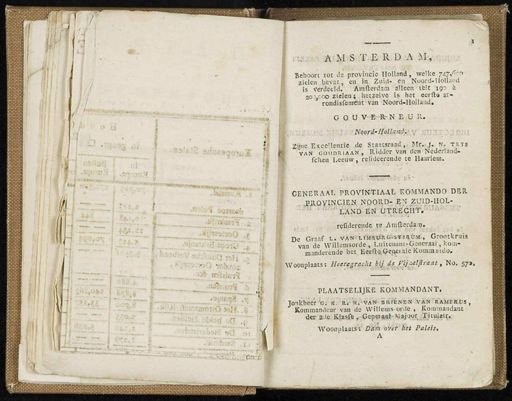 c«ji.i & IJYI SÏERDA M , Behoort tot de provincie Holland , welke jaj/<cb zielen bevat , en in Zuid - en Noord-Ilollaud is tféraèeld . Amfteidam '"• alleen telt iao ii 20MCO zielen ; . hetzelve is het eerlt » ar - rondisfenrerlpvan - Noórd-HoJland . GOU V-E-BrN E ü R . • Jvwi*4feH«fl*AV ' il 2jJne,.Excc'lentie de Staa^aad ,. Mr..jj , N . tists van goudiuaan , Ridder van den - Nederland . fchen I.eeuw , relideerende te Haarlem . CENERAAT . PROVrN-T.IAAL KOMMANDO DER oiVjQïlN.CAEJS . NOORD- E ^ ZUID-HOL - rcOderende te Aniüerdarn , r De Graaf l . vAN'i.-ri*M8t6bs*fc*itail , Grootkruis van de Willemsorde , Luitenant-Generaal , kom - manderende het EetftajCepeialc Koinmando . ^ Woonplaats : Heertgra^tt^Lisnjmllli'aat , No . 57 ». PLAATSELIJKE K.OMMANDANT . Jonkheer'■t?3?ilfflSAiMw'ï3KNEN vkütüSiklSbi , Kommandeur van de Willems-orde , Kominandant der . 2de KJssfe , Genei a«;l-Ma-jour Tjtuiïii ;. Woonplaats ^.' Tmm tfflPVit Paleis . A