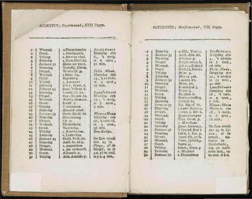 SSSaBSTüS ,' 09j»»i<Mtfrfj XXXI Paget . SEPTEMBER ,- U$rftt*,xand , XSX Dsgen . I Woensd . - a Dond . » Vrijdag 4 Zaturdag ■ s Zondag 31 6 Maandag 7 Dïngsd . S Woensd . 0 Dond . IO . Vrijdag 1 II Zaturdag 12 ZnNDAG 32 IS Maandag ' 4 Dingsd . IS Woensd . Irt Dond . 17 ' Vrijdag 18 Zaturdag 19 Zondag 33 SO Maandag 21 Dingsd . 54 1 VVnensd . * S Dond . » 4 Vrijdag 2S Zaturdag 2(1 ' ZONOAG 34 * 7 Maandag » S Dingtd . « 9 Woensd . SO Dond . Si Vrijdag . s.Pietersbanden s.PortiuncuIa-s . Stevens vind . s . Dom.Huif.k *. . Mama ter Snee . Transfig . Christ . Waalwijk g . s Hage ka . Vastendag s . Lnurens Utr.l . Gron . o . Rotf.'sOrav.k. Loendf rfl . ke . Vasf . Gouda ka . Morin llemaiv . Sneek j . Crlomanes . Hondsd eind . Corn . ZuidK ke . HarljcsAttg lis p . Th : mothcns Vastendag . s . Bartholom . s.Ludovicus Muid.Vdz.ke. Amft . Io . en p . s . Augustinus s . Jan onthoofd . Abkoude p . Abk , Amfteiv.p . Eer ft * kwart Maandag den 6 , ' s morg . te a uren , 3i min . roll6 Maan , Maandag den 1 3 , ' s narttidd . te 2 uren , a7 min . Laat/Itkivart Miandag den 20 , ' s nWg „ te 7 uren , 9 min . Niet * we Maan Maandag j den 27 , ' s namidd . te 3 uren , 36 min , Zon- Eciips , De Zon treedt den £$ , ïn . Virg * , Of dS Maagd , op te 4U . 56 m . ond , te?Ut 4 min » - I Zaturdag 2 Zondag 35 s Maandag 4 Dingsd - S Woensd . 6 Dond . 7 ^ Vrijdag . 1 Zaturdag 9 Zondag 30 10 - Maandag 11 Dingsd . ' 12 Wóe'ésd .- IS Dond . 14 ' Vrijtlag IS Zaturdag Ifi Z0NBAg|j7 * 7 * Maandag " 18 DirigsH . 19 WoensdJ 4o Oond . 21 Vrijdag 22 Zatufdag S3 Zondag 38 « 4 Maandag « Dingsd . sr > Woensd . 27 Dond . 28 Vrijdag 19 Zaturdag SO ZOMDAG39 s.GïH . ThoLj . Amft . Abk . ké . Alkmaar p . Endhoven p . b . A!kin.j,B'Qkz.k Dajftka.Zwoll. JSiim , p . ■ Maria gei . Lpenen ke . Nijm . ke . Rozendaal j . Veere j . Zu phen b . Kruisverheffing Uiïechr , Ie . Ed . Maarê kê . s.LamKBurertp, Leeird;p ; Elb.b . Quatertemper Vast . Ginn . p . B Matt keus Qtta *. LeeiiWjp . H Gravef . Krai k Leïid . I . Utr . p . Texel fch . en la . Thiel , IJsfelfhp . Rureu p . Edam , Gorn . p s . Michiei s.Hterommus Esrftt kwart * Dings dag den 4 , ' s avonds te - 7 Uren , 26 min . Volle Maan , ningsdap den 11 , *$ avonds te J 1 ure.1 „ 40 min . LaatRekwart Dingsdag den 18 , ? s nam . te a uren , 7 mm . Nieuwe Ma <* n , Woensd . den 26 , ' s morg . te 7 , uren , 16 min . De Zon treedt den 23 in Li ~ bra , Of de Schaal , ma- kende de : Herfstfnede , dag en nacht ! even lang , op I en ond . te 6 «»