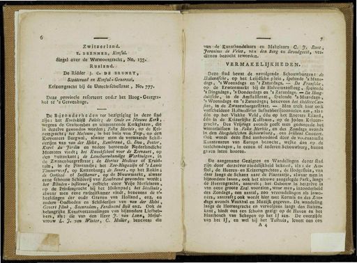 Zwitzerland . E , BRENNER , Konful . Singel over de Warmoesgracht , No , 133 . Rusland . '* Bé'Ridder j . o de brunet , Staatsman en Kon/al - Generaai , Keizersgracht bij de ütrechifclieftraat , No . 75-7 . Deze provincie reforteert onder het Hoog-Ceregts » hoi te ' s Gravenhage . De Bijzotnflrh e den ter bezïgtiging in deze ( tad zijn : het Koninklijk Paleis ; de Oude en Nieuwe Kerft , . wegens de Graftombes en uitmuntende Kerkglazen , die in dezelve gevonden worden ; Felix Meritis , op de Kei- zensgractit ; het Mu/eiim , in het huis van Trip , op den Kioveniers Burgwal , alwaar men de vermaarde Schil- derijen van van der Helst , Rembrand , Gi^Dou , Potter , Karel du Jardin en andere beroemde Kederlandlche Meesters vindt ; het Kweehfchool voor de Zeevaart , op den buitenkant ; de Landbouwkundige Werktuigen , m de Zwanenburgerftraat ; de Hortus Medicus of Kruid- tuin , irfde Plantaadje ; het Zee-Magazijn of ' s Lands Tlmmerwerf , op Kattenburg ; de Beurs , op het Rokin ; de Ontleed - of Snijkamer , op de Nieuwmarkt , alwaar eene fchoone Schilderij van Rembrand gevonden wordt ; het Blinden - infiituut , sefltcht door Vrije Metfelaren , op de Prinfengracbr bij het Molenpad ; het Stadhuis , alwaar men eene rariteitkamer vindt , benevens de af « beeldingen der oude Graven van Holland , enz . en andere Oudheden en Schilderijen van ven der Helst , ' Covert Hink , Saenredatn , Ferdinand Boll enz . Ook de belangrijke Kunstverzamelingen van bijzondere Liefheb » bers , sfls : die van den Heer f . van Loon , Mejuf- vrouw L . jf . van Winter , C . Muller , benevens die £ '« Wade ' Kunsthandelaars en Makelaars^C . '$. Roos , Jeronimo de Pries , van den Berg en Brondgeest , ver- dienen bezocht tcworden . VERMAKELIJKHEDEN . Deze ftad bevat de navolgende Scbouwbijjgen : de Uollandfche , op het Leijdfche plein ,' fpelende ' s Maan- dags , ' s Woensdags en ' s Zaturdags . — De Franfche , op de Erwtenmarkt bij de Halvemaanfleeg , fpelende ' s Dingsdags , ' s Donderdags en ' s Zaturdags . — De Hoog- duitfehe , in de Amflelftraat , fpelende ' s Maandag «. s ' s Woensdags en ' sZaturdagsj benevens het thédtreCas * fino , in de Zwanenburgerftraat . — Men treft hier ook verfcheidetie Hallandfche liefhebberijtooneelcn aan , als t één op het Vlakke Veld , één op het Roeiers Eiland , één in de Keizerlijke Kolfbaan , op de Joden Keizers- gracht . Des Vrijdags avonds geeft men gedurende het wimerfaifoen in , Felix Meritis , en des Zondags avonds in den Hoogduitjchen Schouwburg , een brillant Concert . Ook wordt deze ftad aanhoudend door de voornaamfte Kunstenaren van Europa bezocht , wejke dan op de tusfehendagen , in eenen of anderen Schouwburg , hunne gaven laten hooren . De aangename Gezigten en Wandelingen dezer ftad zijn door derzel ver zindelijkheid Wm ]