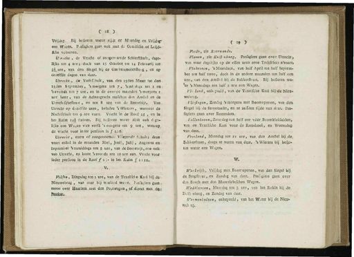 C ' ï * ) Vrijdag . Bij bcfloten water Eij4.c er M-andag en Vrijdag * een W.a'gen . P.-sfsgiers,gaan ook . uut de GDUdfehe.of Ltijd- fiche Schuiten . Ü'reckt , de Vracht - of zoogenaamde Schietffibbti , dage- lijks ten 4 ure ; doch van 13 October . tot 14 Febtuarij ten . Si,ure , van den Singel.bij de Gas Iiuisjuolenftc-g . , en op dezelfde dagen van daar . Utrecht , de - Volkfihuir , van . den isden Maart ret den . I5_den September , ' s morgens ten 7 , ' s.midags ten 1 en 1 ' savohdS ten 7 we , en in de overige maanden ' 5 morgens x . uur later , van de Achtergracht tusfehsn den Amfiel . en de Utrechtfcbeftraat , en ten 8 ure van de Beerebijr . Van » Utrecht op dezelfde uren , behalve ' s Winters , wanneer ds Nachtfchtiït ten 9 . ure vaart . Vracht in de-Roef 2J , en in . het Ruim 14e Huiver . Bij ., bt floten water rijdt ook d.ge.- - lijks een Wasen vice verfa ' smoigens ten 9 ure , waaiop _. de vracht voor ieder perfdon is ƒ 2 ,: 6 . Vtrtcht , extra of zoogenoèmdë'VTiegertde Schuit ; deze- vaart enkel in de maanden Mei , Jnnij , Julij , Augustus en •-. September ' s namiddags ten 5 ure , van deBeerebijt,zoo ook . Tan . Utrecht , en komt . ' s avonds ten 10 ure aan . Vracht vooi .' ieder perfoou in de . Roef f 2 : - in het R.uim £ 1 : 1 o . V . Vxlfin , Dingsdsg ten 2 ure , van de Texelfche Kati bij de Nieuwebrug , van daar bij > wasfend water . Pasfagiers gaan i meest over Haarlem met den Pojtwagen , of direct metsu };;. Sosümjv . ? =» y Veiio , zie Rvermende * Wanen , zie Kuifcniarg . Pasfagiers.gaan over UttecBt » van waar dagelijks op de elfen uren eene Trekfchuit afvaarr » Vinkeveen , ' s Maandags , van half April tot half Septem- ber ten - half twee ,' doch in de andere maanden ten half een ure , van den Amfttl bij de Bakkerftraat . Bij befloten wa- ' er ' s Maandags ten half t ure een Wagen . VU . Und , onb.paald , van de Texelfche Kaai bij"»de Nies * webrug ; - Vliifingen , Zondag ' s morgens , met Breomopenejiti van dea Singel bij de Stroomarkt , en te zeif-den Jijde van drtar . Pas- fagiers gaan over Rotterdam , tcUenhoven,Zaïwdtgun halfuur vóér Boorokloltluiden , van de Texelfche Kaai voor de Ramskooi , en Woensdag- van , daar . Vretland , Maandag ten iï ure , van den Amflel bij de ; B»kkerftraat , daags , te voren van , daar . ' s Winters bij bego- ten water een Wagen . W . TVaolwijh , Vrijdag metBoomopenen , van den Singel bij , de Bergiltsat , en Zondag van daar . PasDgiers gaan over den Bosch met den Maastrichtfchen Wagen . Trraddixvten , Maacdag ten 3 ure , van het Rokin bij de irar.menhuizen , onbepaald » van het Water bij . de . Nisji- wejj.u ».,