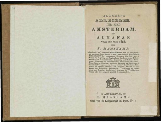 ^^ Hi [ ALGEMEEN DER STAD , AMSTERDAM , EN ALMANAK VOOR DEN JARE l8z3 . DOOR E . MAASKAMP . Inhoudende : een ' completen WEGWIJZER van hét belangrijkste ■ en merkwaardigste aldaar te zien ; eene volledige Alphabctische NAAMLIJST der voornaamste Bewoners dier^Stad , als : de Leden der Regering en Regtbanken , Yredegeregten , Policie , Directiën en Administration ; Doctoren , Advokaten , Procu- reurs , Notarissen en Deurwaarders ; Predikanten ; Makelaars / ü- argadoors en Kassiers ; bijzondere Neringen en Bedrijven ; de voornaamste I<ugcmenttw,~^Mmr- < rMöto , KoffijKnlzen , Esta- minets en vermaaklijkheden ; het Afrijden , Afvaren en Aan- komen der Diligences , Postwagens , Veerschepen en Schui- ten , met derzelver legplaatsen , benevens de Vrachtprijzen . Zijnde alles zoo accunaat mogelijk te zamengesteld . Ü - j*ï # te AMSTERDAM , bij E . MAASKAMP . Hoek yan de Kalyerstraat en Dam , N °. i .'