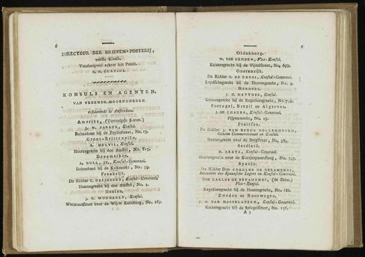 , zVwrSwgwal achter het Paleis . I , W B , B £ 44 R T 1 U S . JI » Ö I VAN VBEEMD-E*d*OGENT)HEDEN , *„,,,»,~* ifi « ut . mi „ a-ja . jntstsm *. Am etiJl^CXffeejKjg^e^atenO Buitenkant bij ! de Foelieiiraat , No . I3 < Heerengracht bij den A*j|gk'{g|^iS « DepemAi^y >. > a A . nuLfc » J z -<$$ g$k9i "" ! raal ' Buitenkant bij de Kalkmarkt , No . 39 . Frankrijk . -«««•««/« De Ridder c . deÏJIWM '? .^^- 3 ®«* W * HeerengteSpfW *^ 1 *"?**? No ' *• II e s f e n . j . «? Wd'NDEULY , ffoff/a '. Warraoerilraat Dver^ê^de*-K«rkiteeg , *' l(59 - ' Oldehbutg . - w . van KlM,wrs:?[Pice > Ronful . Keizersgracht bij de Vijzelttraat , No , 695 , Oostenrijk . De Ridder a . de c«rli , Konful ■ Generaal . Leydfchegrac&t bij dei jHeeréngiacht , No . 4 . H a n o v e r . J . O . M.A T T H E S , Konful . ' Keizersgracht bij de Reguliersgraeht , N0.745 . Portugal , Brazil en Algarves . J . « DE c H A R R o , Konful ■ Generaal , Pijpenmarkc , No , 19 . Pruis f en . ,'"•■,' De Ridder j . van beeck vollenhoven , Geheim Commercieraad en Konful » Heerengracht over de Bergftraat , No , 3S4 . Sardinië '. \- D . a R a T A , Konful - Generaal . Heerengracht over de Korsjespoortfteeg , No . 345 . SparifeV . ' r>e Ridder Don charlos de beramendi , Intendant der Spaanfche Legers en Konful - Generaal ,. Don Carlos de beramendi , ( de Zoon .) Vice - Konful . Reguliersgraeht bij de Heerengracht , No . 112 . Zweden en Noorwegen . ■* i»_yAN hassel green , Konful • GenereeU . Keizersgracht bij de SpiegeKlraat , No . 136 ,*.* A 3