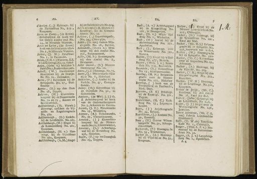 & AS . ë'Arrïpe (. O Keizergr . bij de HarterAaat No . 5-9 > Koopman . Artes en Corap . , ( de Erven ) Grirrrburgwal en hoek van het Gebed zonder end No . 14 , in"Minerale Wateren . Artes en Lyfen , ( de Erven ) hoek van deGrinvnenislefluis No . I , in Minerale Wateren . Artier , ( J . W .) Zandrtraat ' No . J , in Patentolie . Arura , ( P . H . v.)Westerm . Z.Z . b'j Arum , ( Gebr . v .) bezijden't PaleisNo.2,Boekverkoopers . Ashoff , ( W .) Haarlemmer Houttuinen bij de Oranje » ftr . No . fia , Zeilmaker . Avsma , ( F .) Buitenkant bij de Schipperftr . No . 17 , Veri- ficateur . — ' * smus , ( H .) op den Dam No . 18 , Tapper . Asfchen , ( M ) Kloveniers- burgwal bij deNieuwmarkt No . 70 en 71 , Katoen en Sasi jet winkel . Asfchenbergh , ( H . Vérwit ) Heerengr . tusfchen de Vij- zelftr . en Reguliersgracht No . 580 . Asfchenbergh , ( G .) Kerkftr . bij de Leidfcheftr . No . 265 . Asfchenbergh,(H .) Singel bij de Romolenfteeg No . 282 , koopman . Asfchenbergh -, ( H . v .> Hee- rergr . bij de Vijzejftjjaat No $ 80 ., Koopman . Asfchenbergh , ( A.M.)Singel . AV . bij'deüriekoningltr.No.SJS0 , Asfcben bergh,(J . H . Backman ) . KfiBïrsgr . bij de Utrecht - fcheltr . No ., 3S . Asfcher , (.) Rapenburgerftr » No . 34 . Chirurgijn . Asfelc , ( G . van ) Buiten-Wie * rirgerftr , No . 18 , Bakker . ' Asfendelft , ( Duyts v .) Hse- ' rengr . bij den Amftel No . 778 , Burgemeester . Asfer , ( M . P .) Heerengracht bij den Amftel No . 8 ,. Procureur * Asfer Daniel , ( S .) Nieuwe Heerengragt No . 20 . Astro , ( J . C .) Rozengr . No . 73 . Astro , ( J .) Weitermarkt ftille - zijje No . 6 , Makelaar ! Attkinfon , (.) Amftel bij de Kerkftr . No , 47 , Comniis-fionair . Aubry . ( IVI .) Kalverftraat bij . de Osjesfluis No . 90 , ia . Galanterien . ' Ausloos , ( de Wed . J . J .) O ». Z Achterburgwal en hoek ' van de Oudemanhuispoort No . 3 , in Kanten en Garens . Auwel , ( J . V .) Nieuwmarki ; No . 29 , Winkelier . Avcuer , ( A .) Tuindwarsftr ». No . 55 , Vleeschhouwer . Averink , ( J ) Kloveniers- burgwal bij de Nieuw- markt No.7'a , Linnenwinkel . ! Avocaat , ( L .) Achterburg- wal bij de Terenfteeg No . , 298 , Makelaar . Baade , ( F .) op lietDioogbak ; No . jgj , Tapper ». BAy Baak , ( A . v .) Achterburgwal bij de Kreuyelfteeg No . 161 , in Droogerijen ; *' Baak , ( H . v .) Wijde Hei . fteeg No . 1 , Winkelier . Baak , ( H ) Amilel bij de Halvemaanfteeg No . n 1 Apotheker . Baak , Q.j Keizersgr . over de Westermarkt Nó . J02 , Notare . Baalde , ( J .) singel hij r'e Hei- ■ fteeg No . 4S7 , Notaris . Baaien , ( Wed . [. v .) Beurs- ' Ouis No . 10 &, Boekwi'rfk . Baarends , ( R .) Heerenitraat . No i3»Scluiitenvoerder . Baarflag , ( H . N .) Brouwers- gracht o«:r de Heeren - markt No . 223 , Makelaar Baarflag , ( ) hoek van de Doslenftr?at en Turfmaikt , Med . Doet . Baarsma , ( R s .) Prlnlengr . bij de Rozengr . No . 551 , Tapper . Baarsfelman , ( H . C .) Kolk - ( leeg No . 13 , Logement . houder . Baart , ( J . ) Anjeliersgracht No . 44 , Bakker . Baartfcheer , ( J .) Rusland No . 30 , Komenij . Baay , ( G .) Groote Witten . burgerftr . No . 30 , Scheeps . timmerman . Bacharach , ( P .) Bloemgracht No . 34 , Timmerman . Backer Jz . , ( A .) Heerengr . bij ile Vijzelftnat No . 59 , Koopman . BA , ? Backer , (/) singel bij de - Nieuwe LiiterfchekerkNo . 212 , Chirurgijn . Backer , ( H .) Keizersgr . bij de Spiegelftraat No . 00 Raad der Stad . Backer , ( Mr . W . J .) Keizers . gracht bij de Spiegelftr . No . 128 , Secretaris van de ftad B f «' ■> CW .) Heerengracht bij de Spiegelftr . No . 511 . Backer , ( Mr . C .) KalverHiaaeover de Gaperfteeg No . ,, Advocaat . ' ' Backer , ( A .) Heerengr . bii de Vijzelftr . JN 0 . 5Ö0 . Backer , ( r.H .) Singel bij den Blaajiwbiirgwal No . 323 Koppman . Backer , ( W . H ) Heerengr bij'de Leidrchegr . Koopman . Bicker de Jonge , ( Mr . C .\ Prinfengr .' bij den Amflel No . 16 , Eaad der flad Backer , ( Jufvr .) Kcizerfgr . bij de Leijdfcheftr . No 646 ^ Baden , ( J , J.J sirgei'over de Warmoesgracht No . 145 , Juwelier . Baerle Advocaat , ( Mr . C . G . van ) Fabrijk Lcerdamfche * Glasblazerij . BaSy , ( T . W.de ) Texeffche - Kade No . 2 , Chirurgijn . Baggen , ( Wed . A . P . v .) Bin- nenkant bij de Bantamrner - ftraat No . 30 . Baggen , ( B . J . v .) Langebrng - fteeg No . 2 , ApotheSei ,. '
